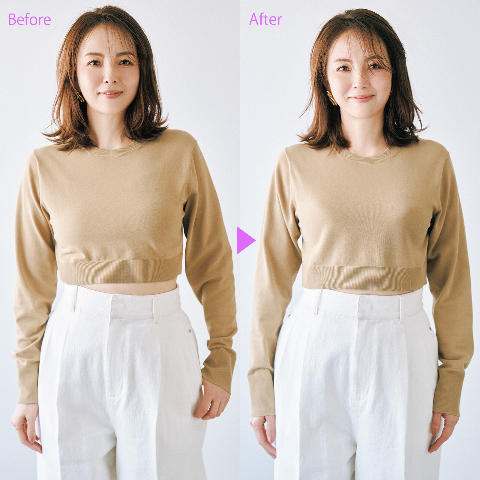 流行の短か丈トップスはバストアップするだけでこんなに見違える