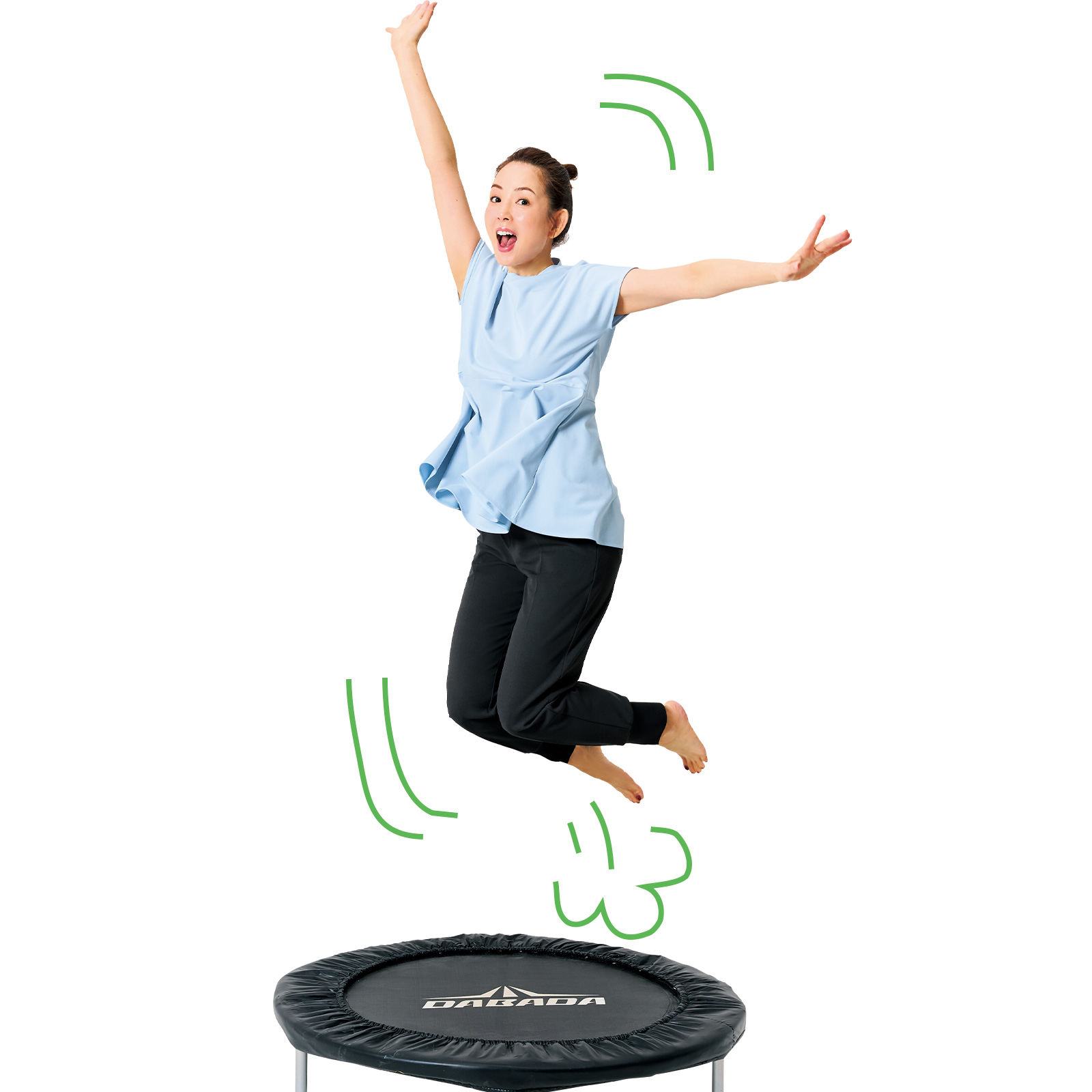 「1人用サイズのトランポリンで筋トレとストレス解消が同時に実現。無重力感も楽しく、上半身の脱力もできて肩こりも改善。足の筋トレにも有効!」(ライター・森島)