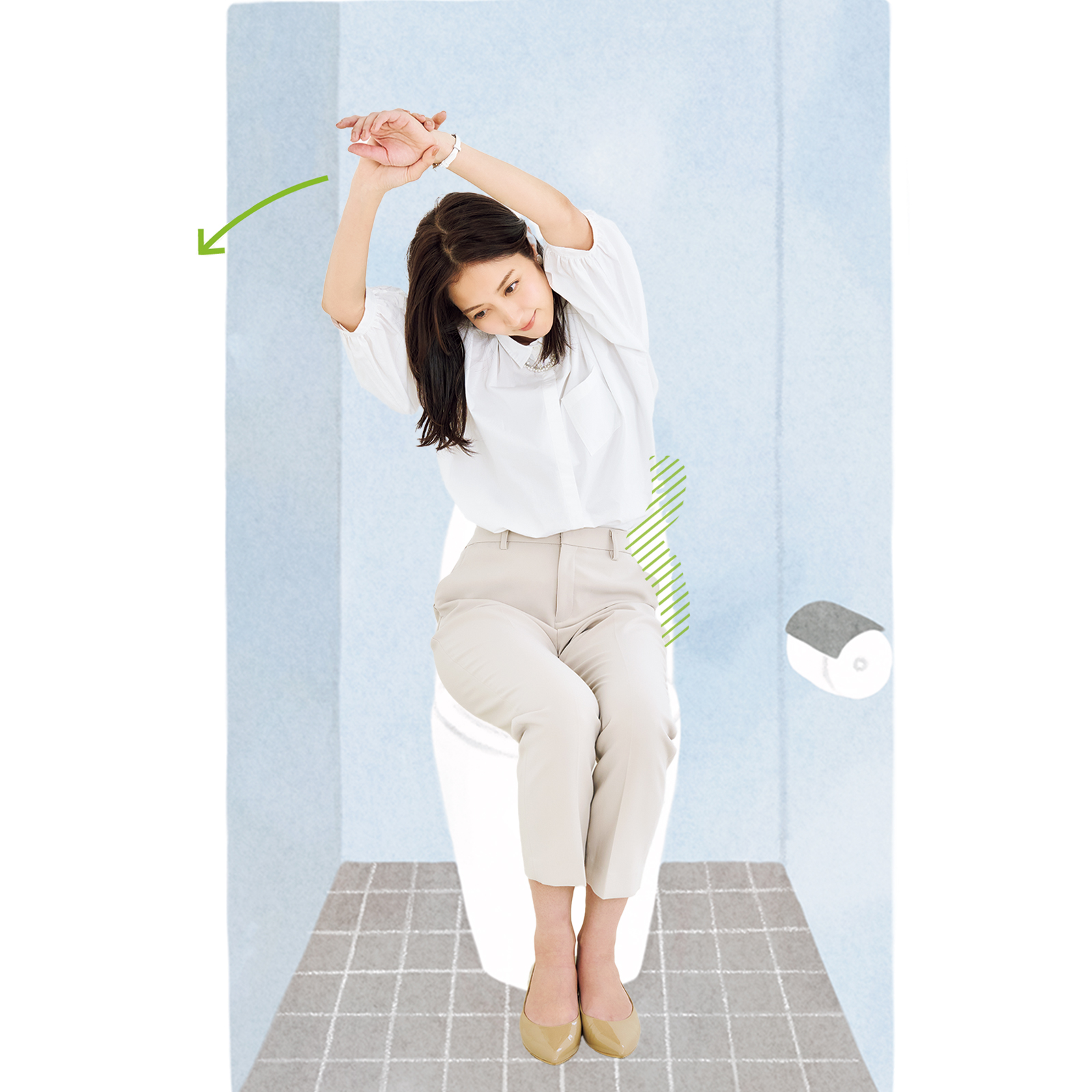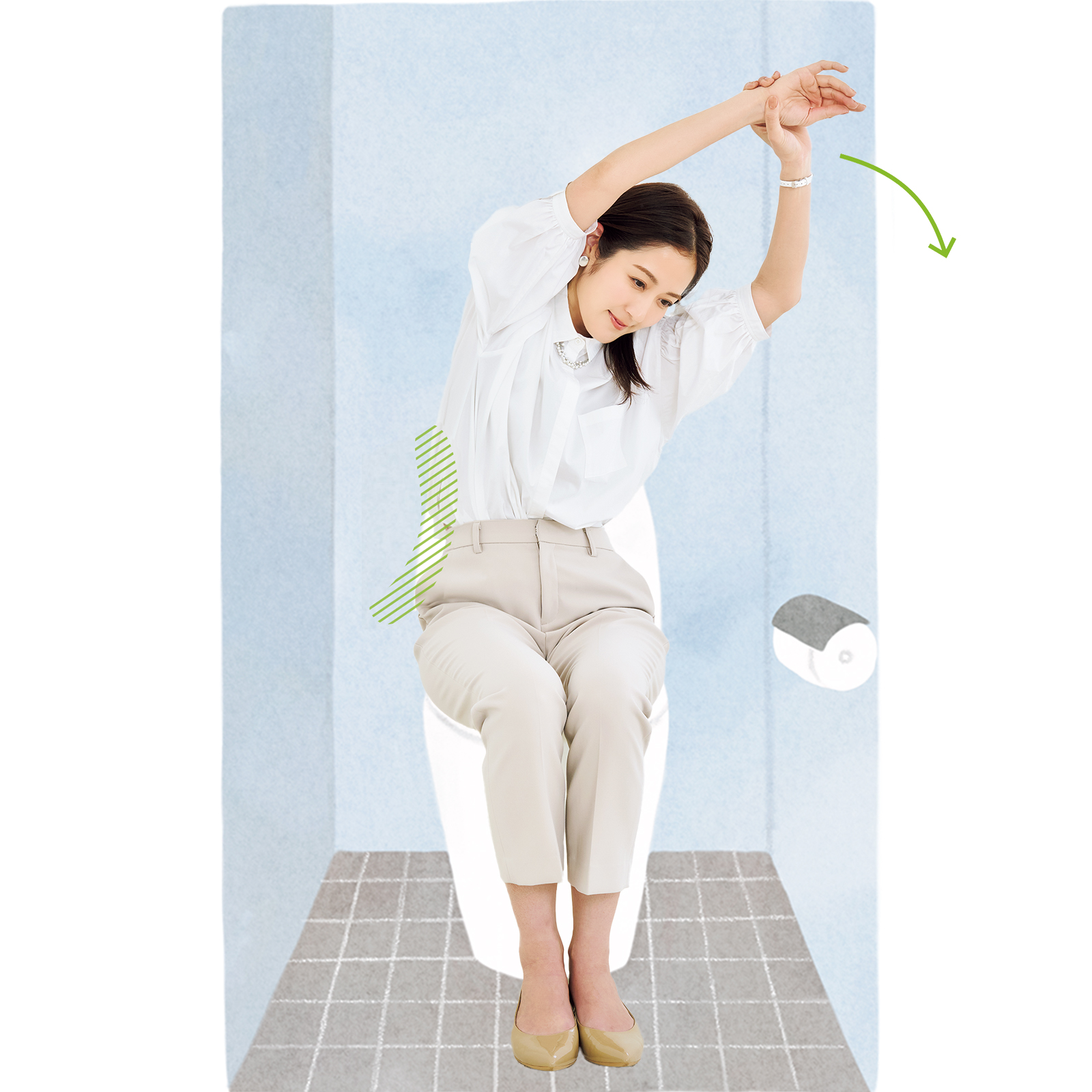 トイレに行くたび脇腹を伸ばして美くびれになる習慣づけを