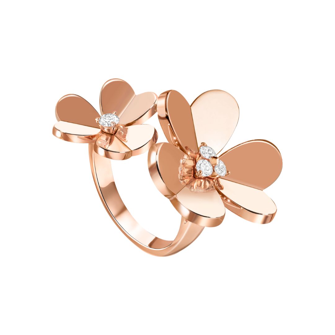 長年、植物の美しさをインスピレーションの源としてきたヴァン クリーフ&アーペル 。メゾンのアイコンのひとつである「フリヴォル」は、美しく咲き誇る可憐な花をモチーフにしたコレクションで、そのグラフィカルで軽やかなデザインが魅力。カーブを描く立体的なハート形の花びらは、ほのかに動きを感じさせ、自然に宿る生命力を生み出します。ミラーポリッシュで仕上げられた地金タイプと、ダイヤモンドが敷き詰められたラグジュアリーなデザインがあり、ともに多くの女性に愛され続けている名品ジュエリーです。