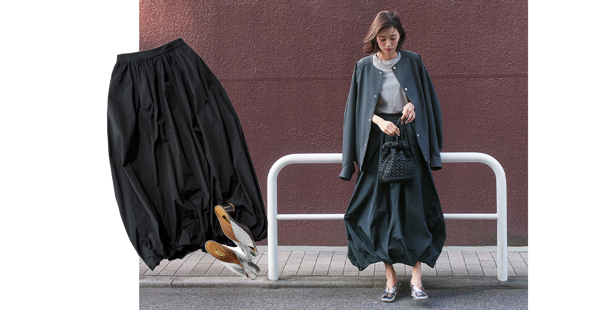 ▶︎最旬【バルーンスカート】は復職ママにも!モノトーンで大人っぽく