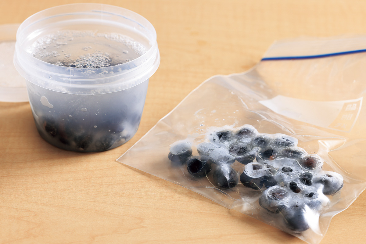 下ごしらえしたしじみを、ファスナーつき保存袋に重ならないように入れる。密閉容器に入れ水を加えて凍らせ「氷しじみ」にしても。