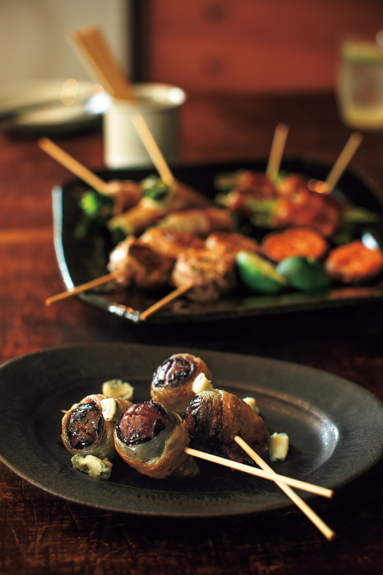 串に刺してあるだけで、ぐんと楽しくて気分が上がる串焼きは、気取らずに食べられてお酒も進む最強のおつまみ。相性の良いものを何でも気軽に巻き、フライパンで焼くだけだから簡単で失敗知らずです。