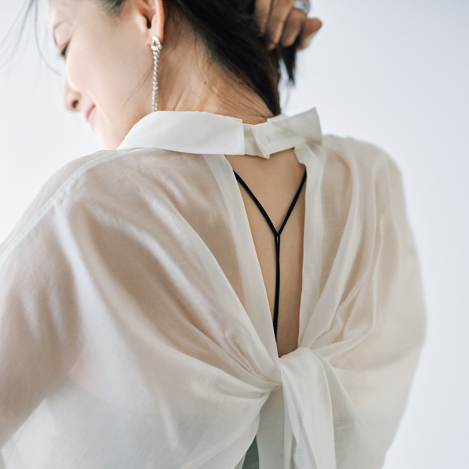 トレンドの見せトップスのインナーは、どんな角度から見られても恥ずかしくない上品なデザインが鍵。ホールド力もありつつ洋服見えする特徴的なストラップのものを選べば、洋服がよりおしゃれに着こなせます。