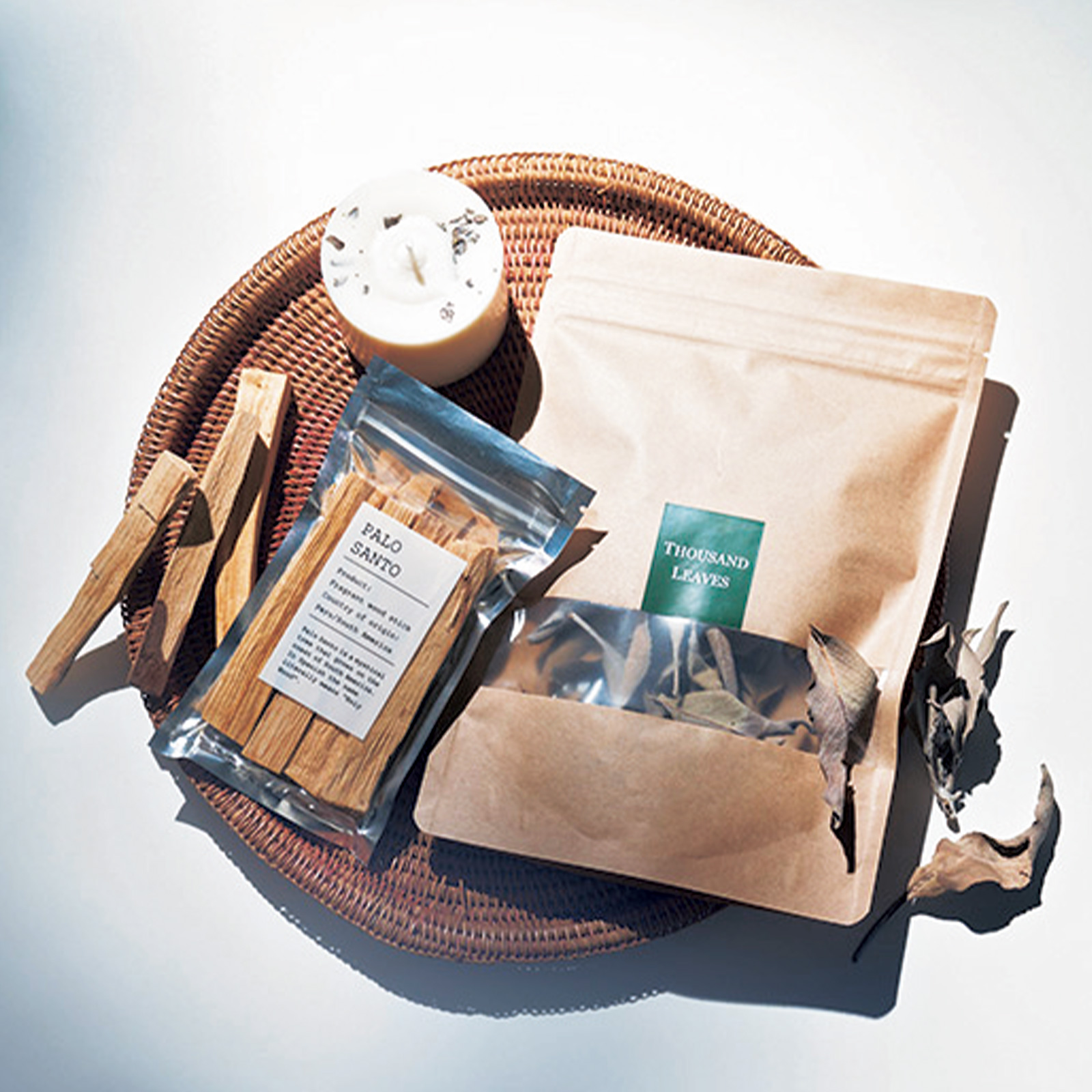 燻した香りで空間ごとリフレッシュできるスマッジングが人気。古来から用いられるナチュラル素材、ホワイトセージやパロサントの香りは人間に親和性も高く心身ともに蘇生させてくれそう。