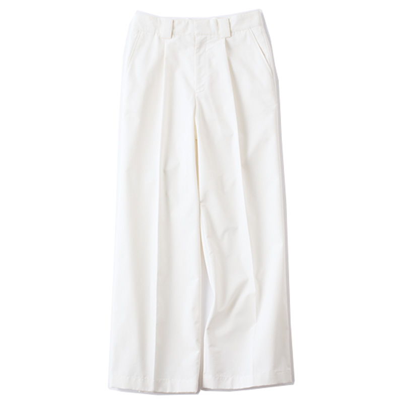 パリッとした上質なチノ素材。白でも膨張せず美シルエット!パンツ¥12,100(ミラ オーウェン/ミラ オーウェン ルミネ新宿2店)