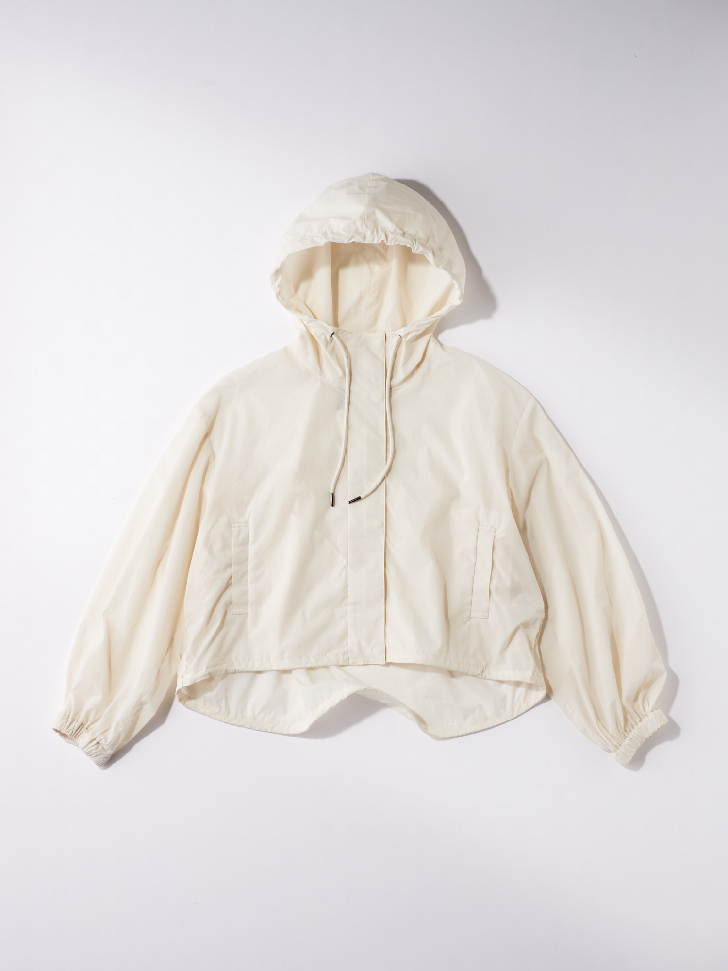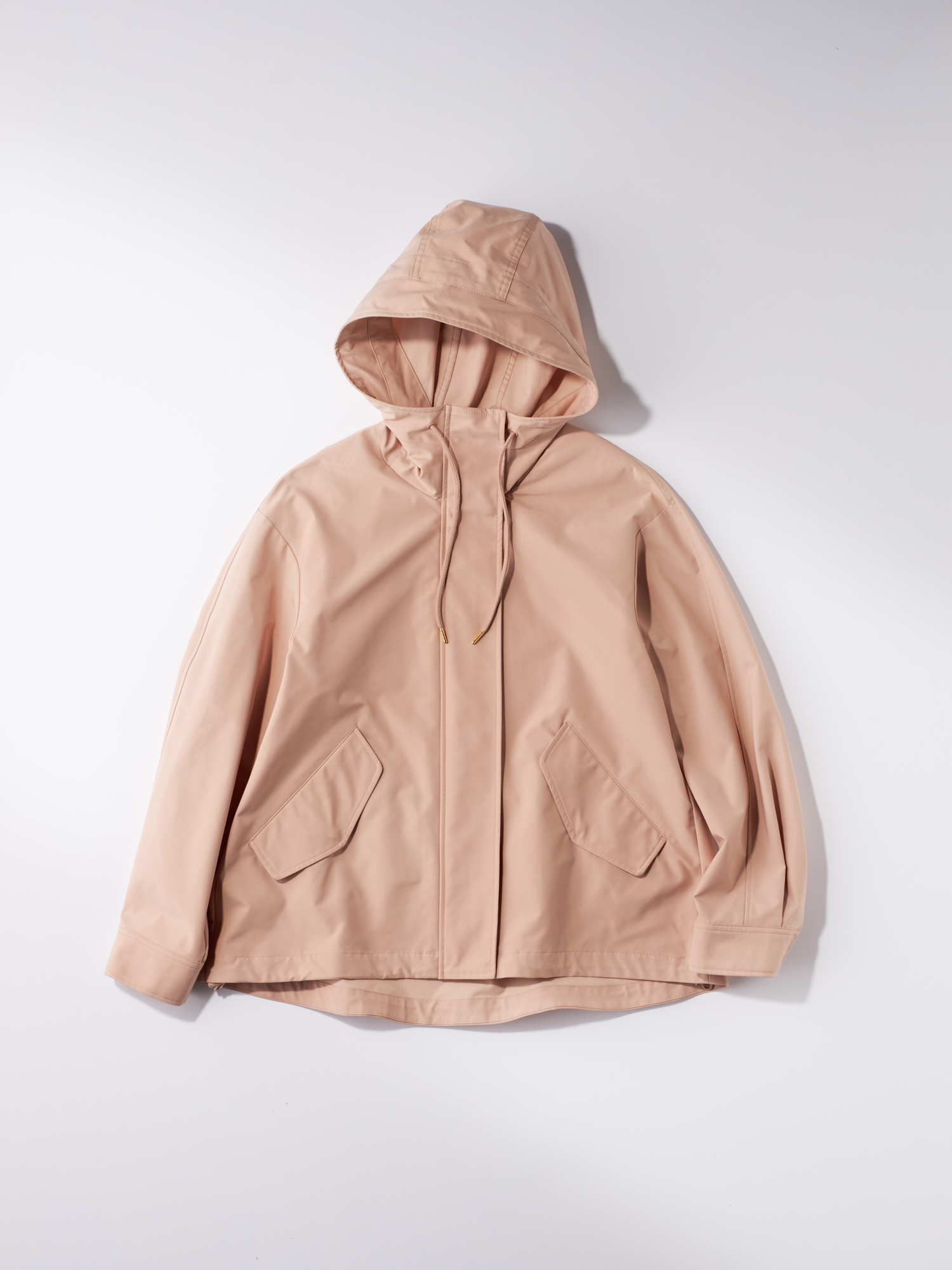 立体的なシルエットで、だらしなく見えない絶妙なサイズ感に仕上げたフーディは、大人もきれいめに着回せるデザイン。ウォッシャブルでUVカット、防シワ加工と機能性抜群。ヒップまでを自然にカバーできるペプラムデザインと裾丈もうれしいポイントです。フーディ¥24,200(SONO/ミラク)