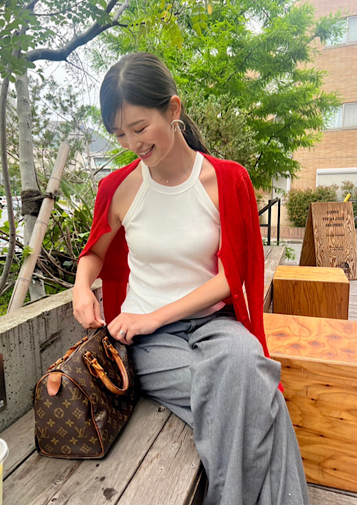 CARDIGAN/UNIQLO : C TANK TOP , PANTS/UNIQLO BAG/Louis Vuitton SNEAKERS/D.A.T.E.