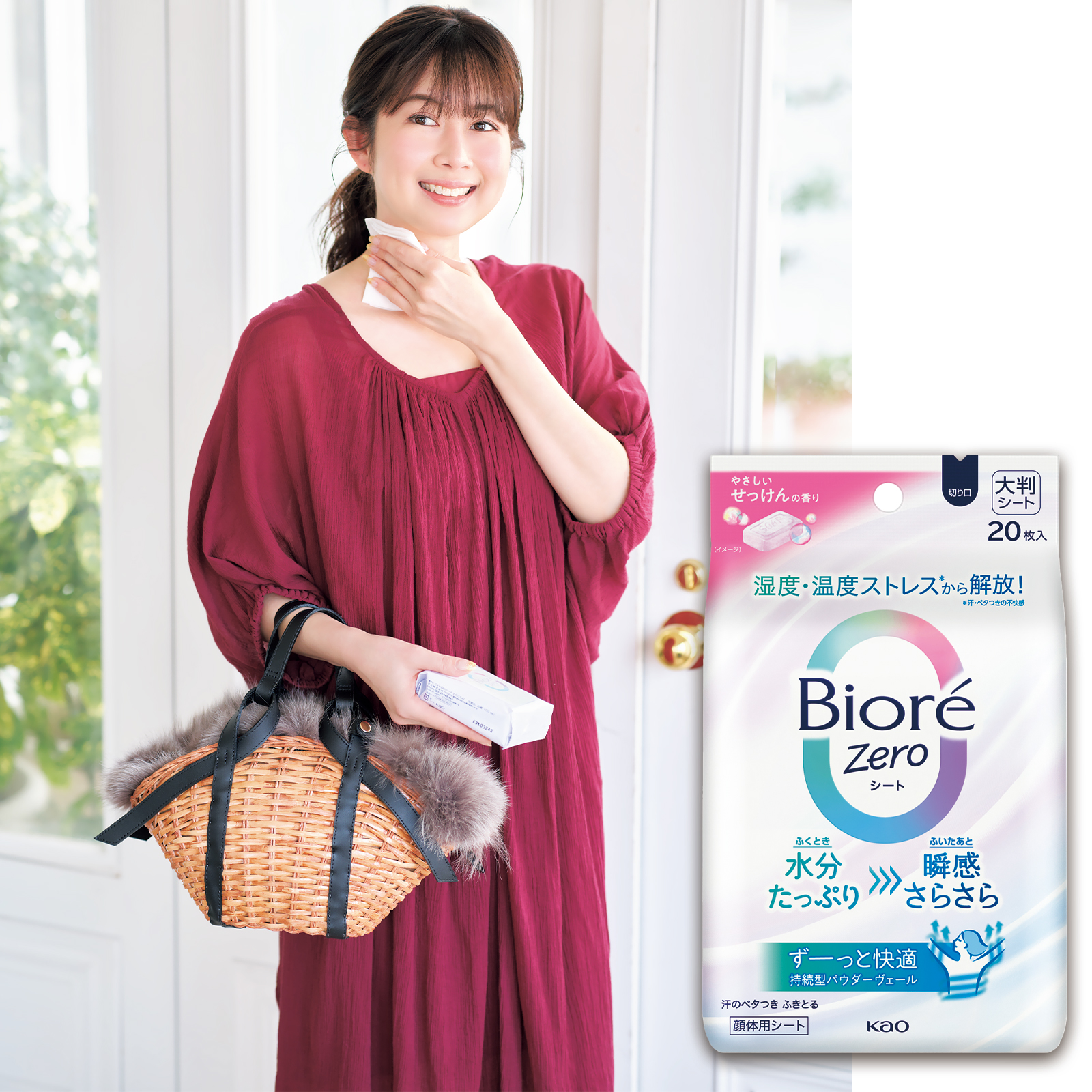 右:汗拭きシート/汗を拭き取りサラサラ感を長時間キープする、新技術「持続型パウダーヴェール」を搭載。ビオレZeroシート(やさしいせっけんの香り)230×200 mm・20枚¥528〈編集部調べ〉(花王)