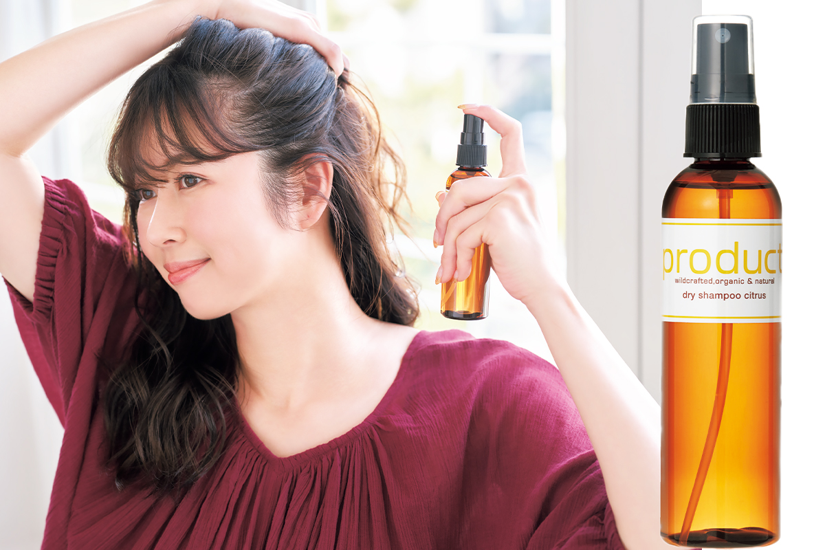 右:ドライシャンプー/メンソール配合のドライシャンプーは、シュッとした瞬間、頭皮がひんやり爽快に! ザ・プロダクト ドライシャンプー シトラス 115ml ¥1,650(ココバイ)