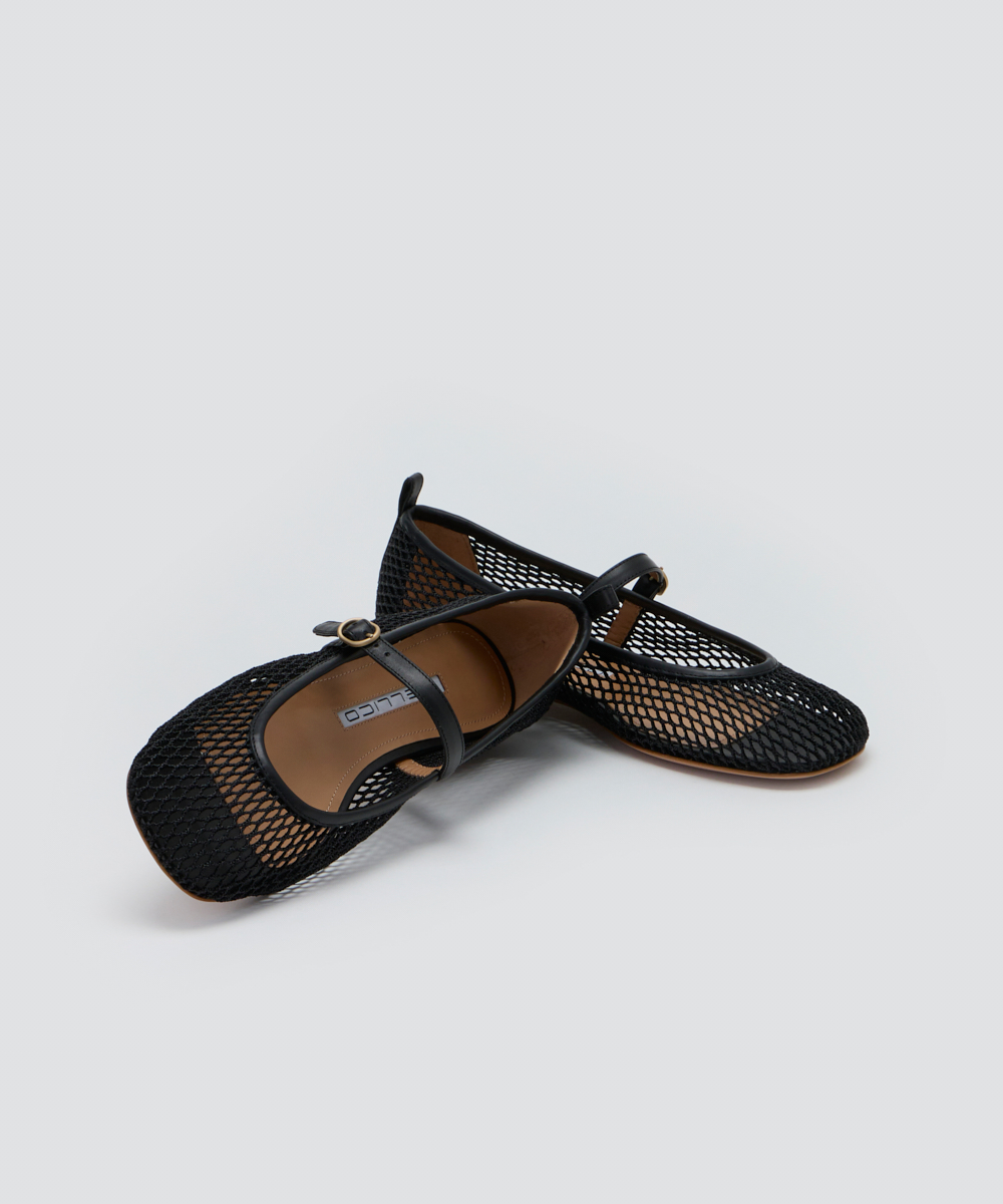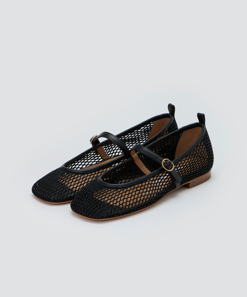 抜け感をプラスしてくれるメッシュ素材と、ヌーディなデザインで夏場も涼しげに履ける一足。なだらかな曲線が特徴的なスクエアトゥと、広めのワイズで足幅が広い人にも無理なくフィット。華奢なストラップがどんなコーデとも相性抜群です。
