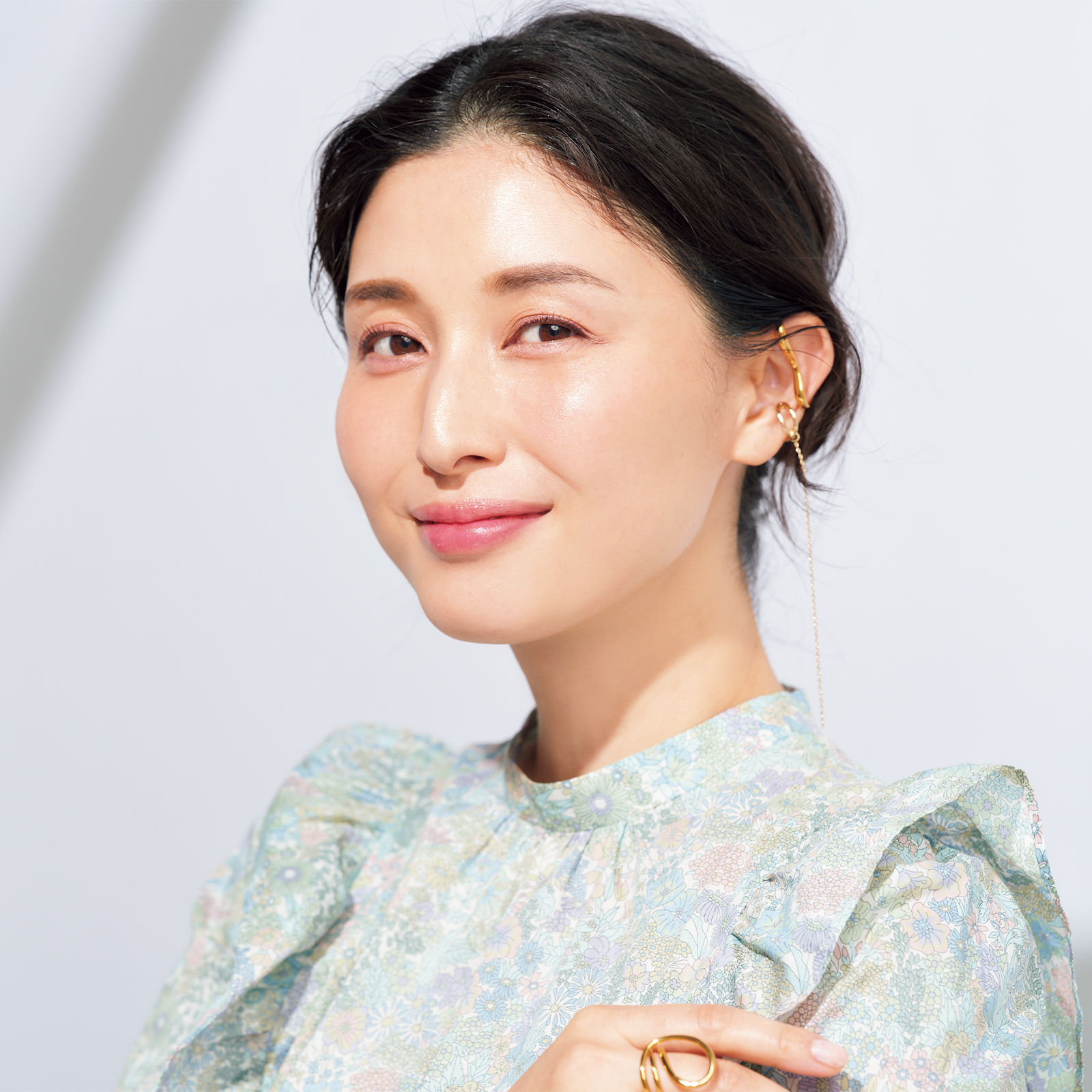 ブラウス¥19,800(ラブティックボンボン/パル)イヤーカフ(上)¥2,750(下)¥2,310(ともにノーヴィス)リング¥1,980(ヘンカ/ロードス)