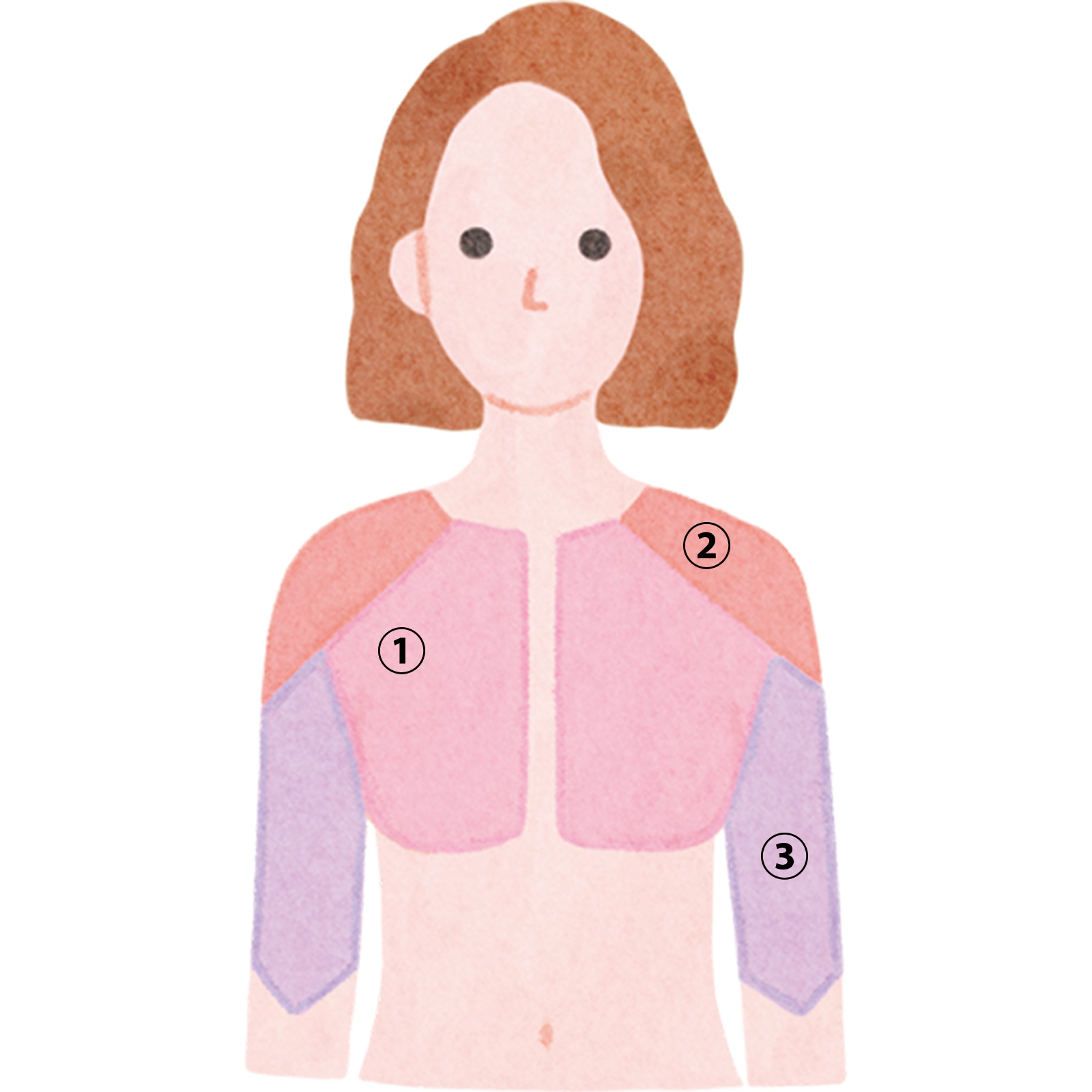 胸の表層の筋肉。猫背や前かがみの姿勢で縮まりやすく、まずはここをゆるめることが大切。鍛えるとバストの位置が引き上がる効果が。