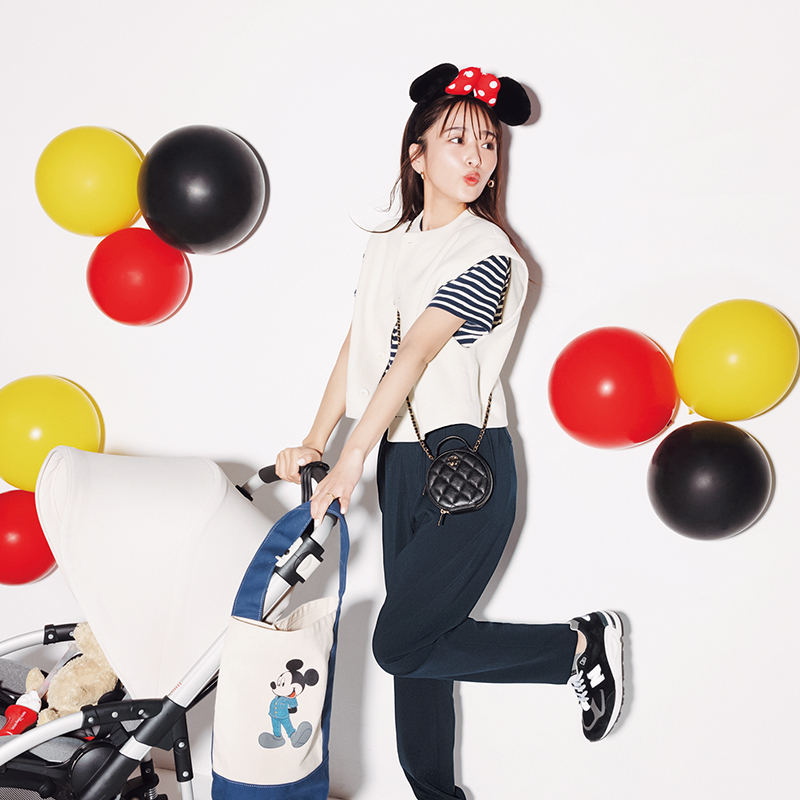 ディズニーランドへ行くときも、貴重品は気分が上がるポーチにイン。珍しいサークル型がコーデのポイントに。