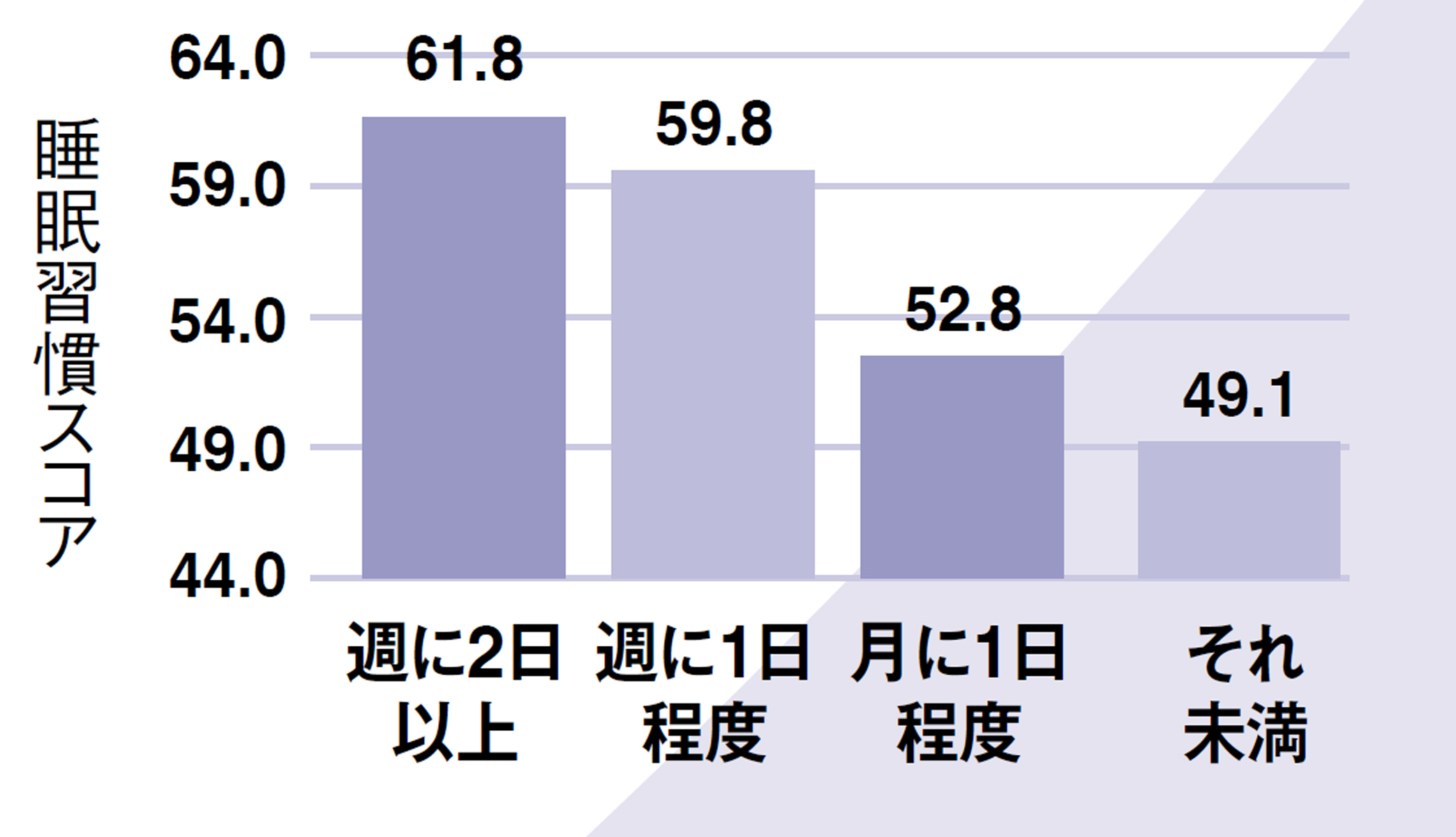 子供の睡眠習慣のスコアはCSHQ(Children’s Sleep Habits Questionnaire、子供の睡眠習慣質問票)をベースに、ブレインスリープで独自に点数化。点数が高いほど子供の睡眠習慣が乱れているとの判定。