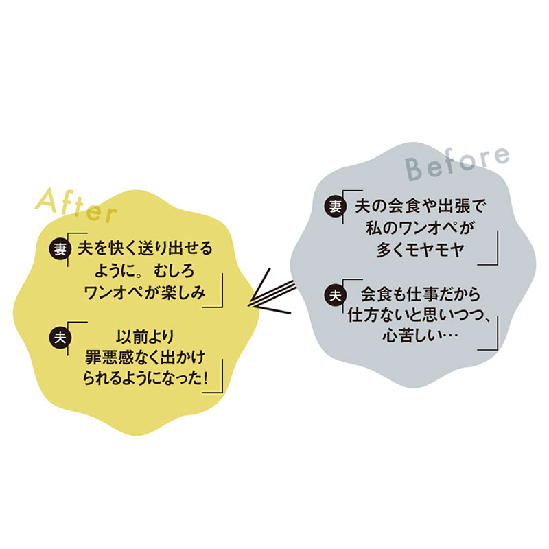 夫は仕事柄、会食が多め。産後仕事量をセーブした私からすると、家計を支えてくれることに感謝しつつも、思いっきり仕事をしている夫がうらやましくて。また、慣れないワンオペでストレスも多く、イライラをため込んでいました。家事育児の負担に関する幾度ものケンカを経て、私が半分冗談で「じゃあ、ワンオペの時はお金を払ってよ」と言ってみたら、意外にもOK。我が家はそれぞれが年間に使っていい同額の予算を決めています。ワンオペ手当制度では、お願いする方が自分の予算から相手に取り決めた金額を支払うことに。帰宅が24時を回ると深夜手当としてプラス料金、出張の時は1泊いくら…とルール決め。制度を取り入れてから、お互い自分の予定で出かける際の罪悪感が減ると同時に、入った手当で何を買おうかとワンオペがむしろ楽しみに。また、夫が子どもを見てくれている時間も思った以上に多く、私から夫に多めの手当を支払うことになった月も。これまでのモヤモヤがお金を介在させるだけでこんなにすっきり解消できてびっくり!