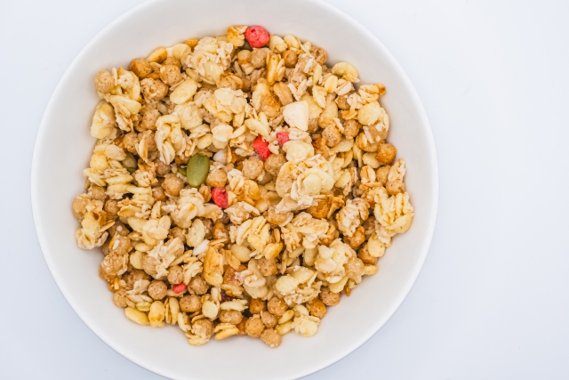 やみくもに食事を制限するよりも食べてもよいものを設定し、無理なく食欲の衝動を抑えることが重要。シリアル食品のグラノーラ、全粒粉トースト、玄米ご飯のほか、タンパク質の多い鶏肉も腹持ちがよくおすすめ。血糖値の上昇が緩やかな食べ物ほど腹持ちがいいので、血糖値を上げにくいそばや大豆食品、きのこ類、魚などの低GI食品を選んでみましょう。