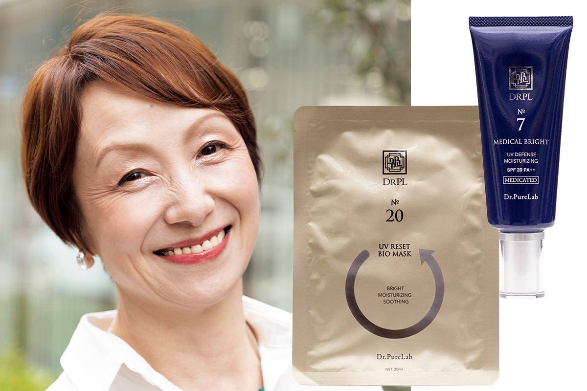 予防美容をコンセプトにしたドクターピュアラボの美白成分入りメディカルブライトとUVリセットバイオマスクでしっかり紫外線ケア。さらに毎日のストレッチと頭皮ケアで筋膜をほぐしています。
