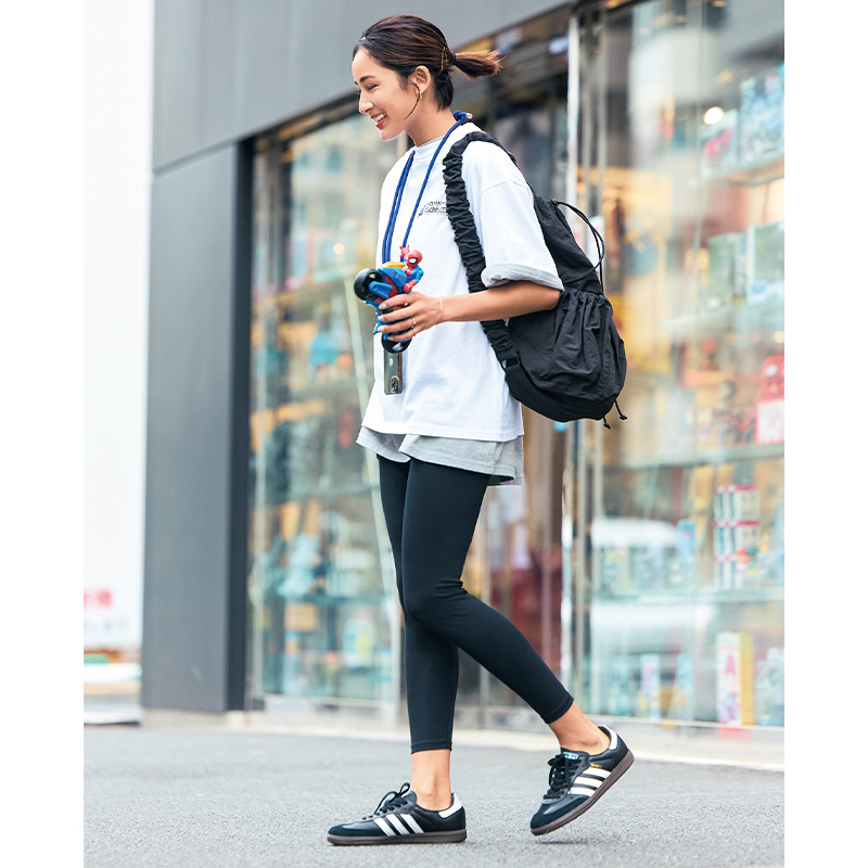 カットソー¥12,980中に着たカットソー¥9,900(ともにザ シンゾーン/シンゾーン ルミネ有楽町店)レギンス¥11,000(トゥー ユナイテッドアローズ/ユナイテッドアローズ渋谷スクランブルスクエア店)ピアス¥19,800(イリスフォーセブン/フーブス)バングル¥88,000(ヒロタカ/ヒロタカ 表参道ヒルズ)リング[薬指]¥165,000〜リング[小指]¥15,400(ともにアルティーダウード/THE ANOTHER MUSEUM)バッグ¥20,350(トゥデイフル/ライフズ 代官山店)スマホロープストラップ¥4,400スマホケース¥2,860(ともにトポロジー/トポロジー フラッグシップ ショップ)スニーカー¥15,400(アディダス/アディダスお客様窓口)