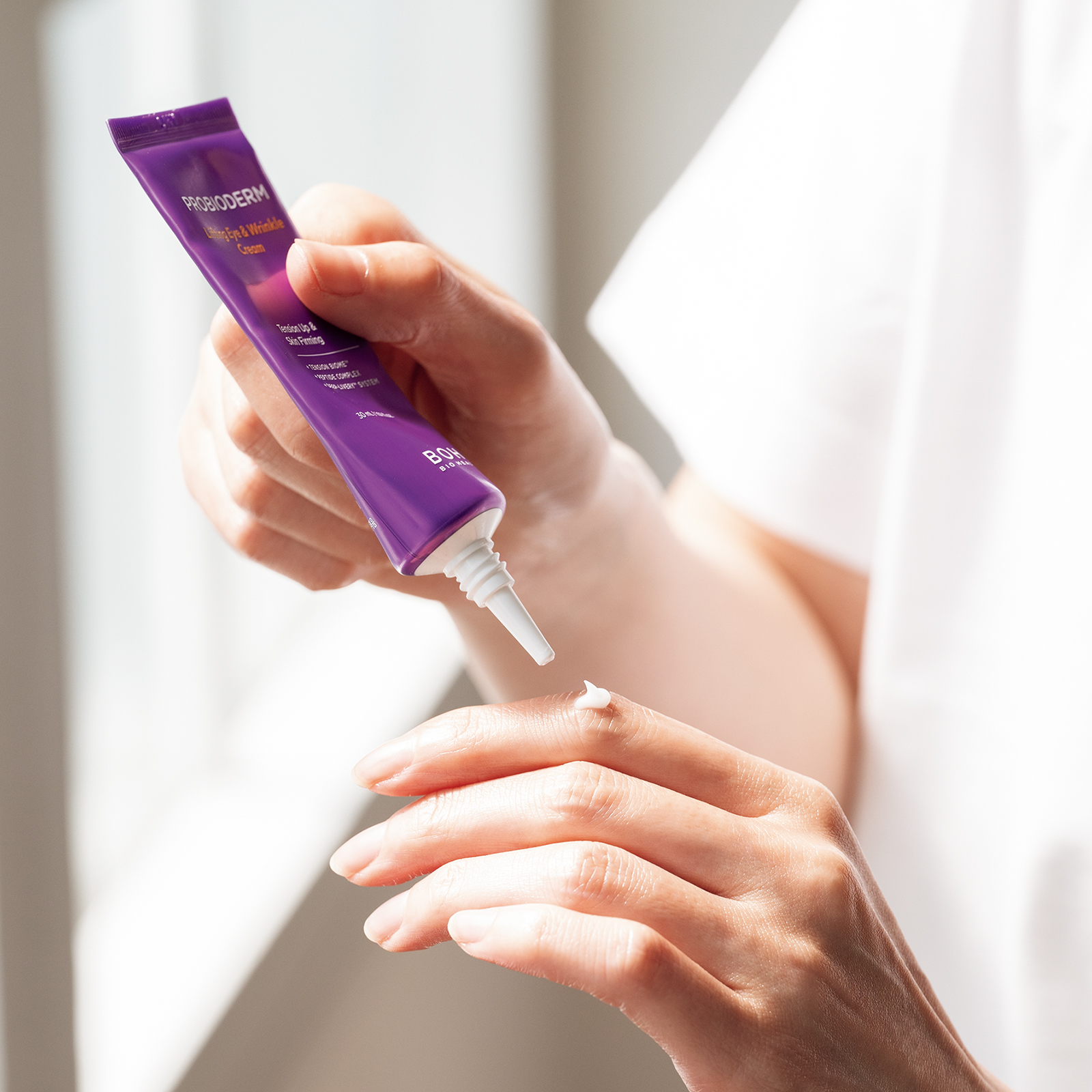 シワ改善効果のある目元用クリームを関節のシワに塗りこんでマッサージ。徐々にシワが目立たなくなります。
