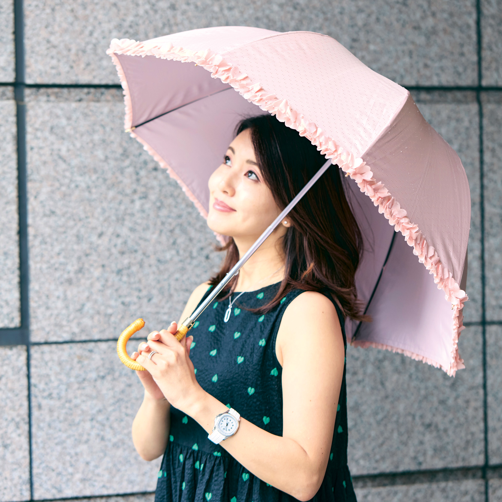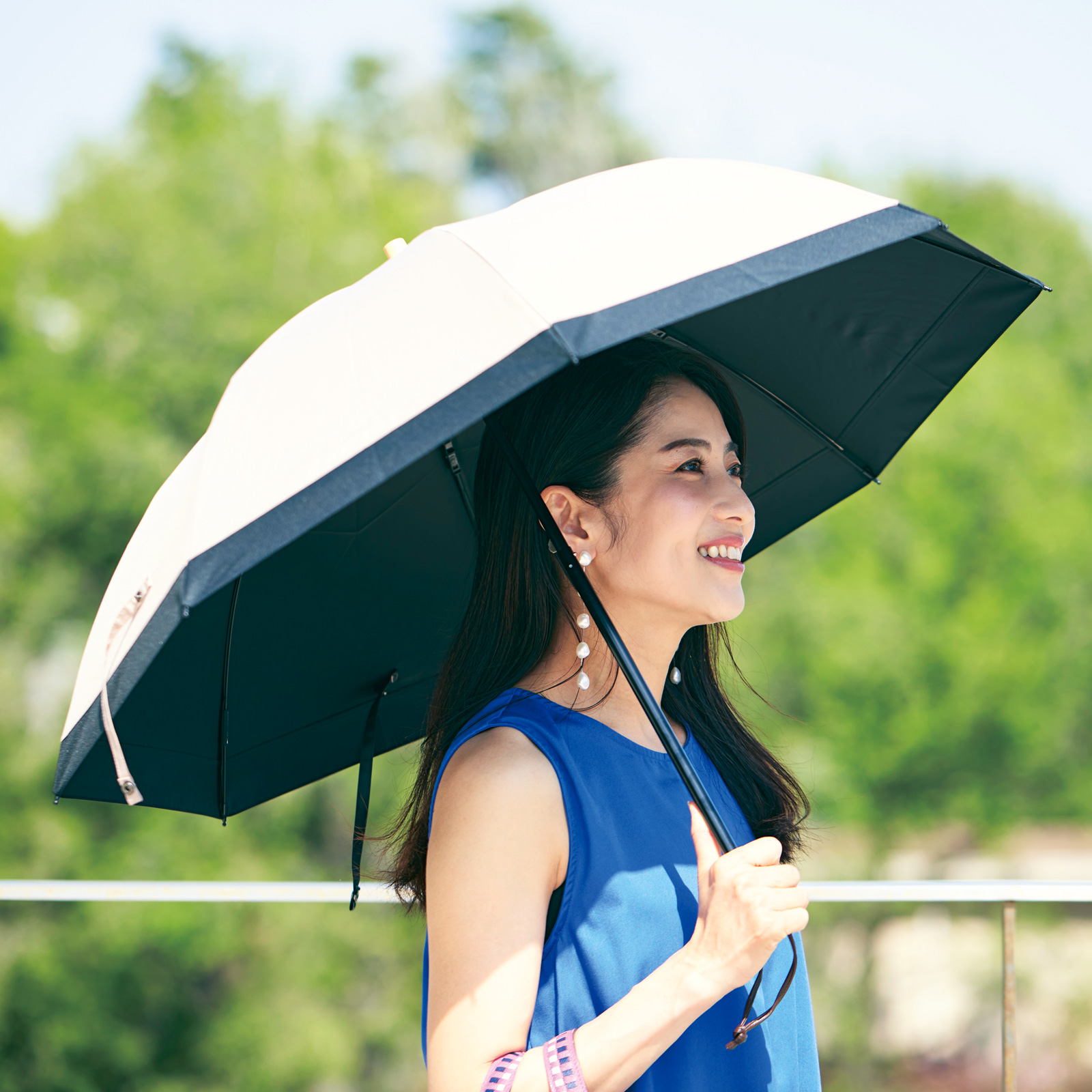 ①サンバリアの日傘は100%完全遮光で、夏の強い日差しの下でも安心。憧れの神崎恵さんがSNSで紹介されていたものをポチりました。