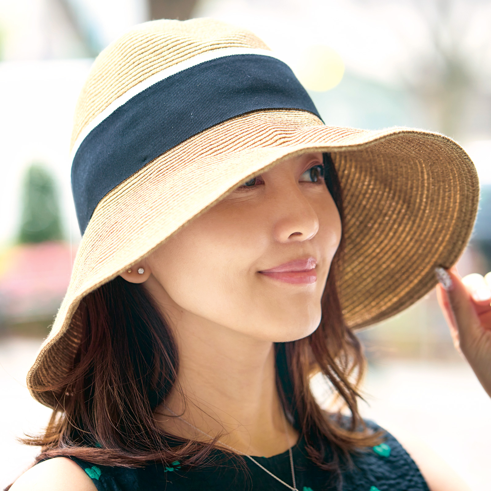②Chapeau d’ O のつば広帽子は太陽から顔をしっかりガードするデザイン。折り畳んで持ち運べるので、旅行に持って行く際も重宝しています。