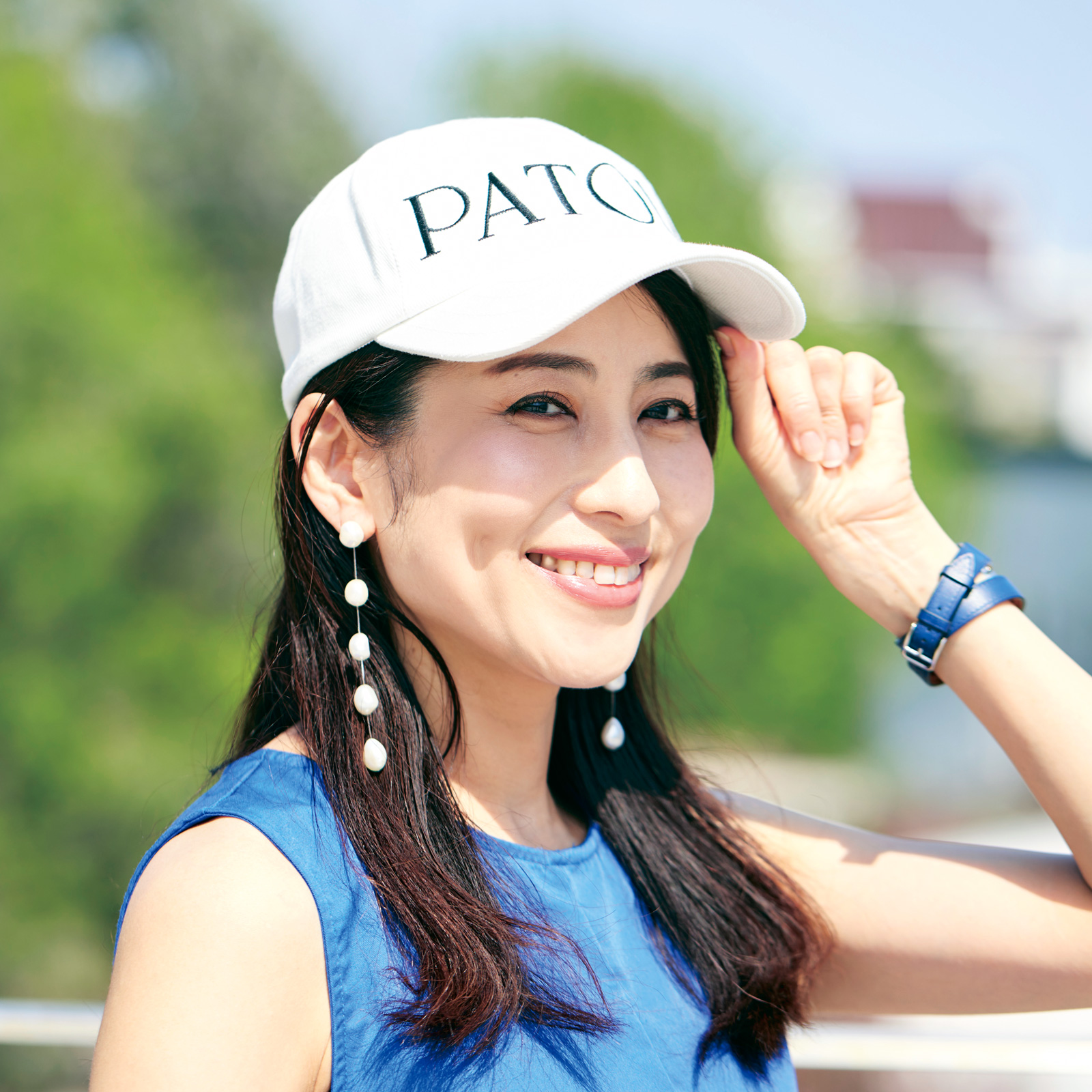②PATOUのキャップはどんなファッションにも合わせやすいので、子どもと公園に行く時や、ママ友とランチに行く時によくかぶっています。