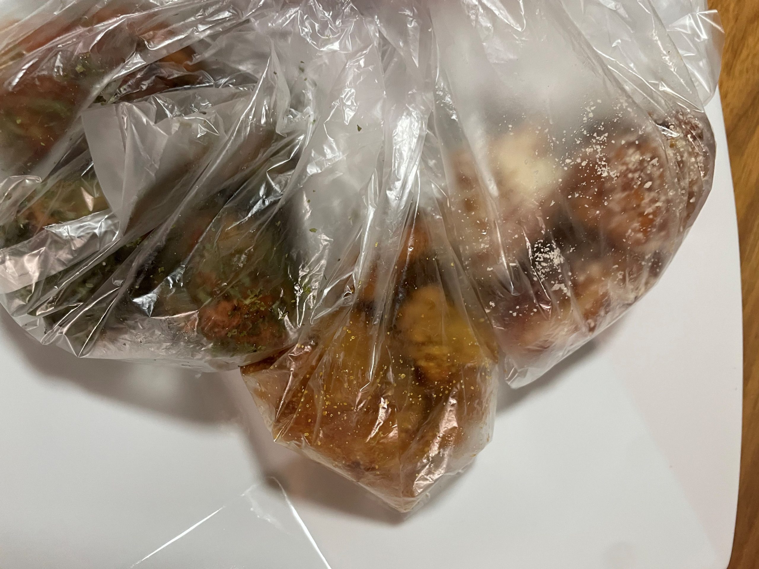 ③ポリ袋にお好みのフレーバーをそれぞれ入れる。唐揚げを入れ、振って味付けする。