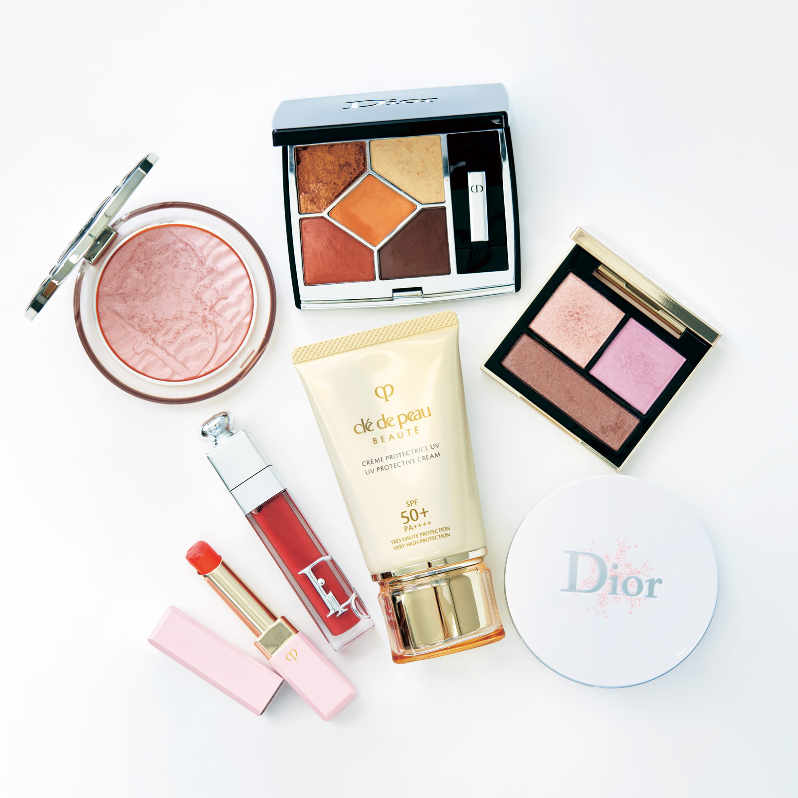 リピ買いしてるクレ・ド・ポ ーボーテのUV。ファンデ、アイシャドウ、リップ(024番)、パウダーは大好きなDIOR。スナイデルのアイシャドウは友人とお揃い。