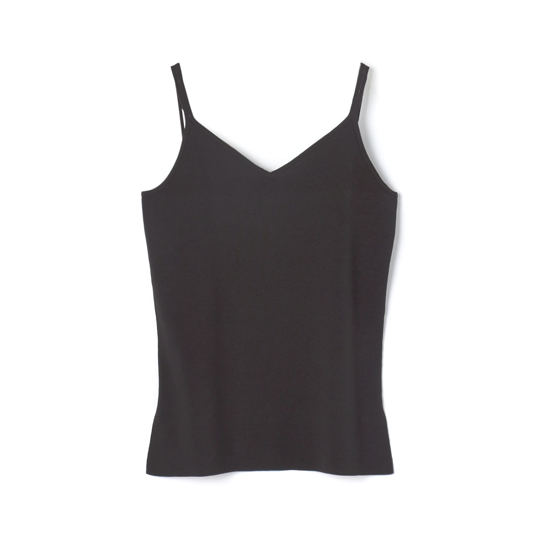 しっかりとしたリブ素材で体のラインを拾わない、カップ付きのキャミソール。華奢な細めのストラップで、肩回りをすっきりとシャープな印象に見せてくれます。