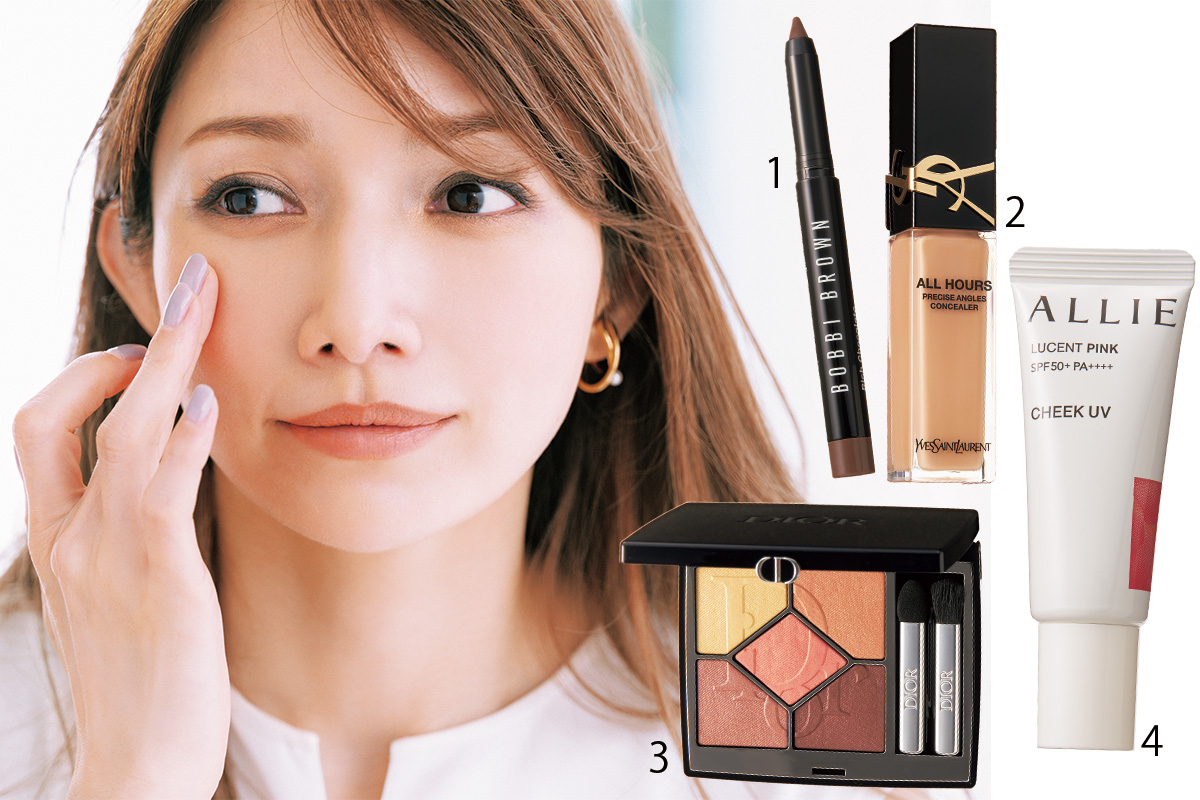 ほんのりトーンアップした肌に、UVカット効果のあるファンデとチークで焼けない最強美肌に。