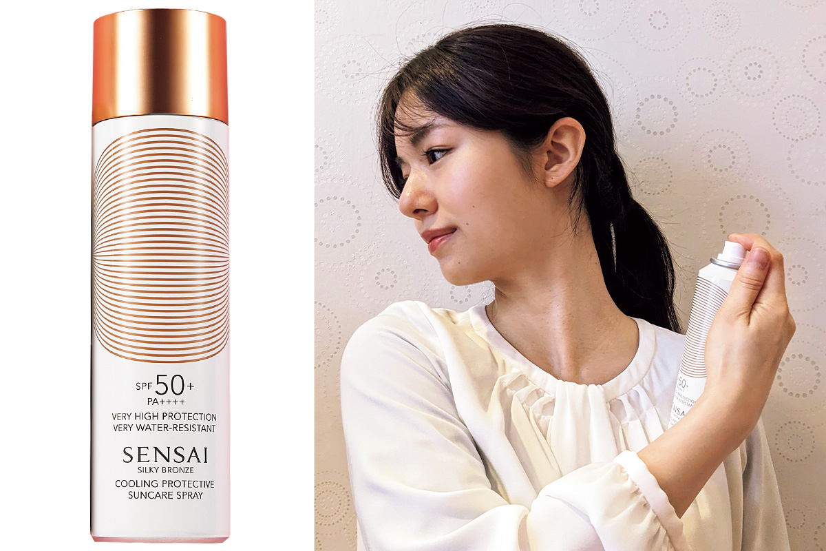 汗で日焼け止めが流れた時こそスプレーの出番。特に忘れがちな首やデコルテにはピッタリ。パーツ1カ所につき、2~3秒程度吹きかけるのが、焼けないコツ。