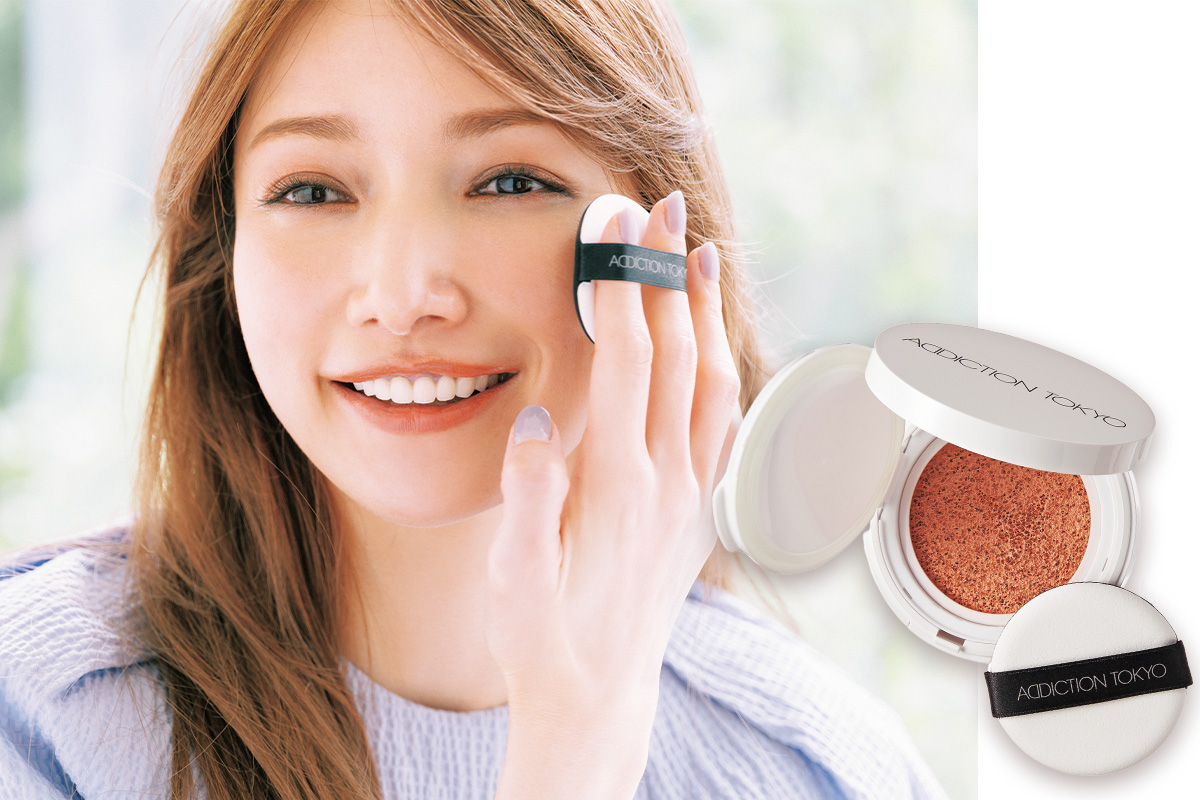 手を汚さずささっとメーク。上からも塗り直しやすく、持ち運びにも便利です。スキンケアUV タッチアップ クッション 003 SPF45・PA+++ ¥5,830(セット価格)(ADDICTION BEAUTY)