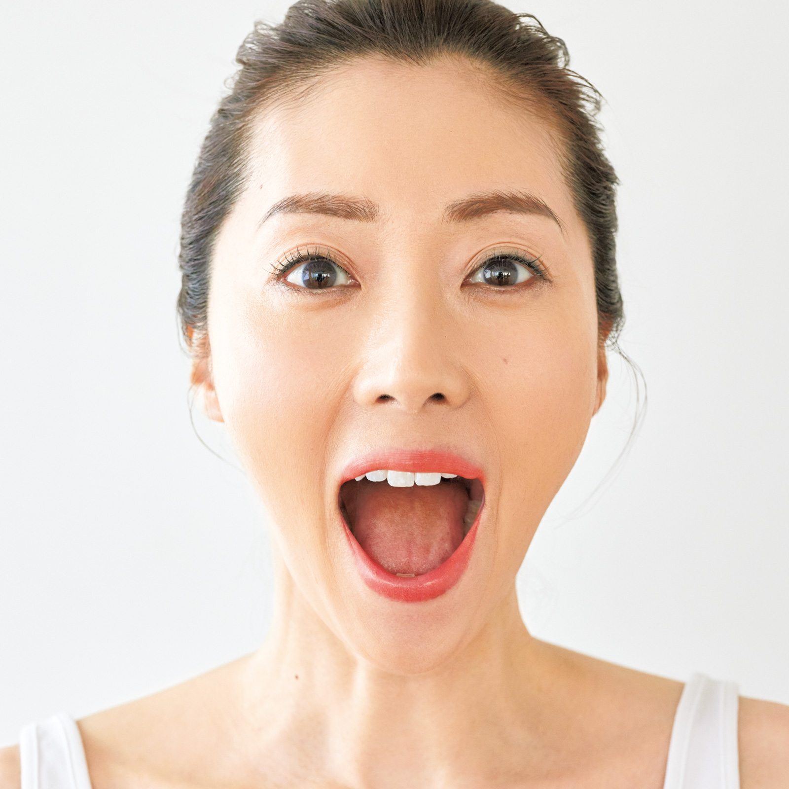 ❸「うー」で口輪筋など口周りの筋肉のトレーニングを。顎関節症の人は大きく口を開ける際には細心の注意をしましょう。