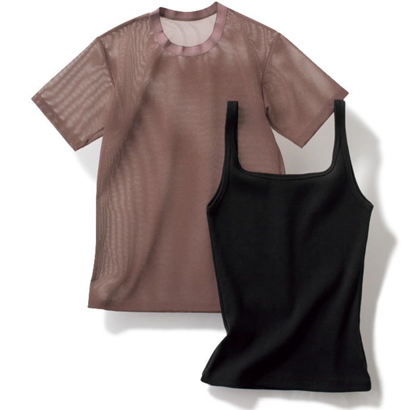 徐々に目に慣れてきた〝透け〟は通勤にも応用!透けさせるインナーがオフィスに相応しいスクエアなデザインなら抵抗なし、との声が。