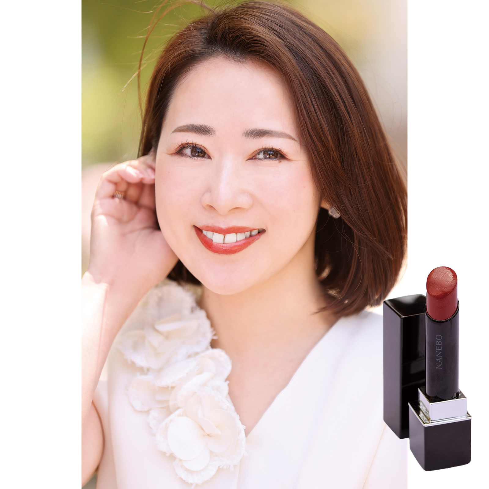 清潔感あふれるオールホワイトコーデにKANEBOの赤リップV06番を合わせれば、華やかさがプラスされるし肌に透明感が出て色の白さも際立ちます。