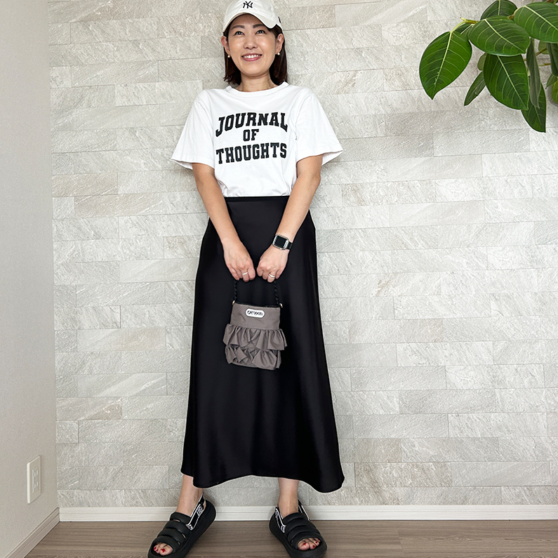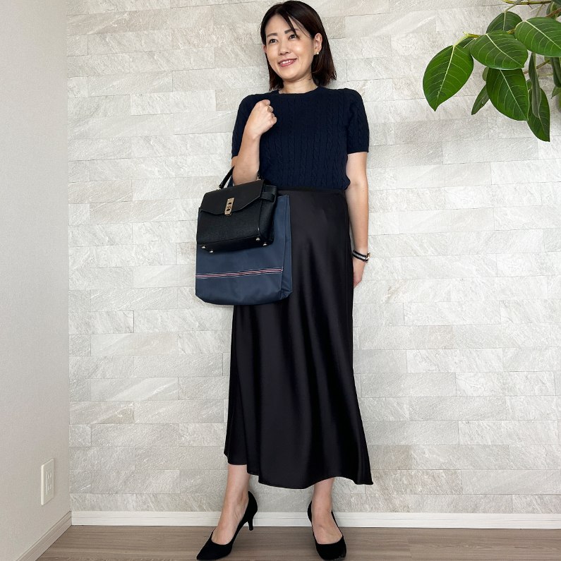 今から大活躍【ユニクロ】褒められ名品「サテンスカート」は黒でも軽やか!