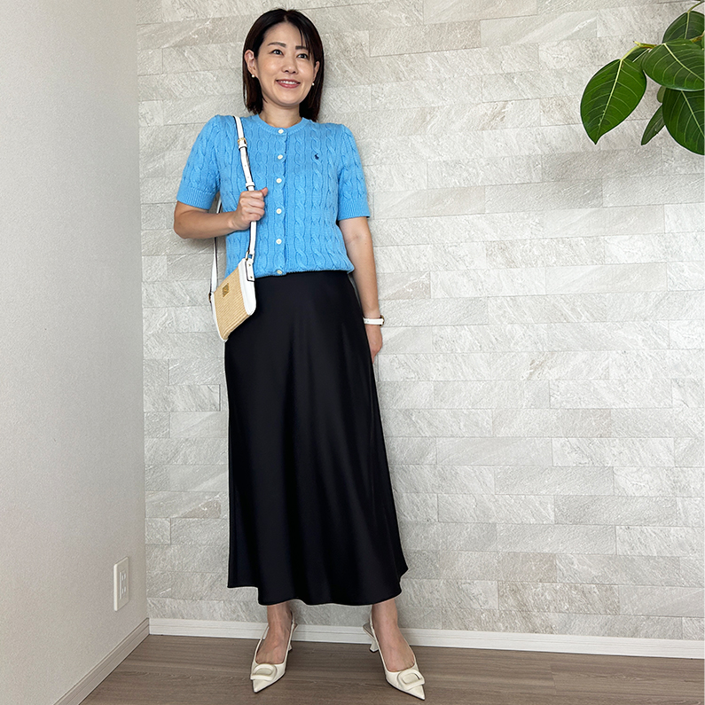 上品なラルフのケーブルニットとも相性抜群!習い事の送迎や夏休みの義実家への帰省服としても好印象。