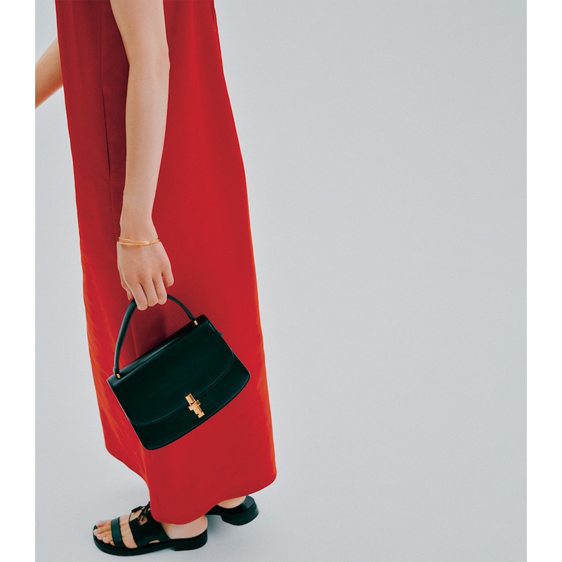 海外のSNSで赤いワンピースを着こなしている姿にひとめ惚れ。日本では勇気の出ないキレイな赤の服もパリなら浮かずに着られそう。ワンピース¥17,600(アクテ)ピアス¥85,800バングル¥539,000(ともにモニス/フォーティーン ショールーム)サンダル¥47,300(カチム)ザ ロウのバッグ/本人私物