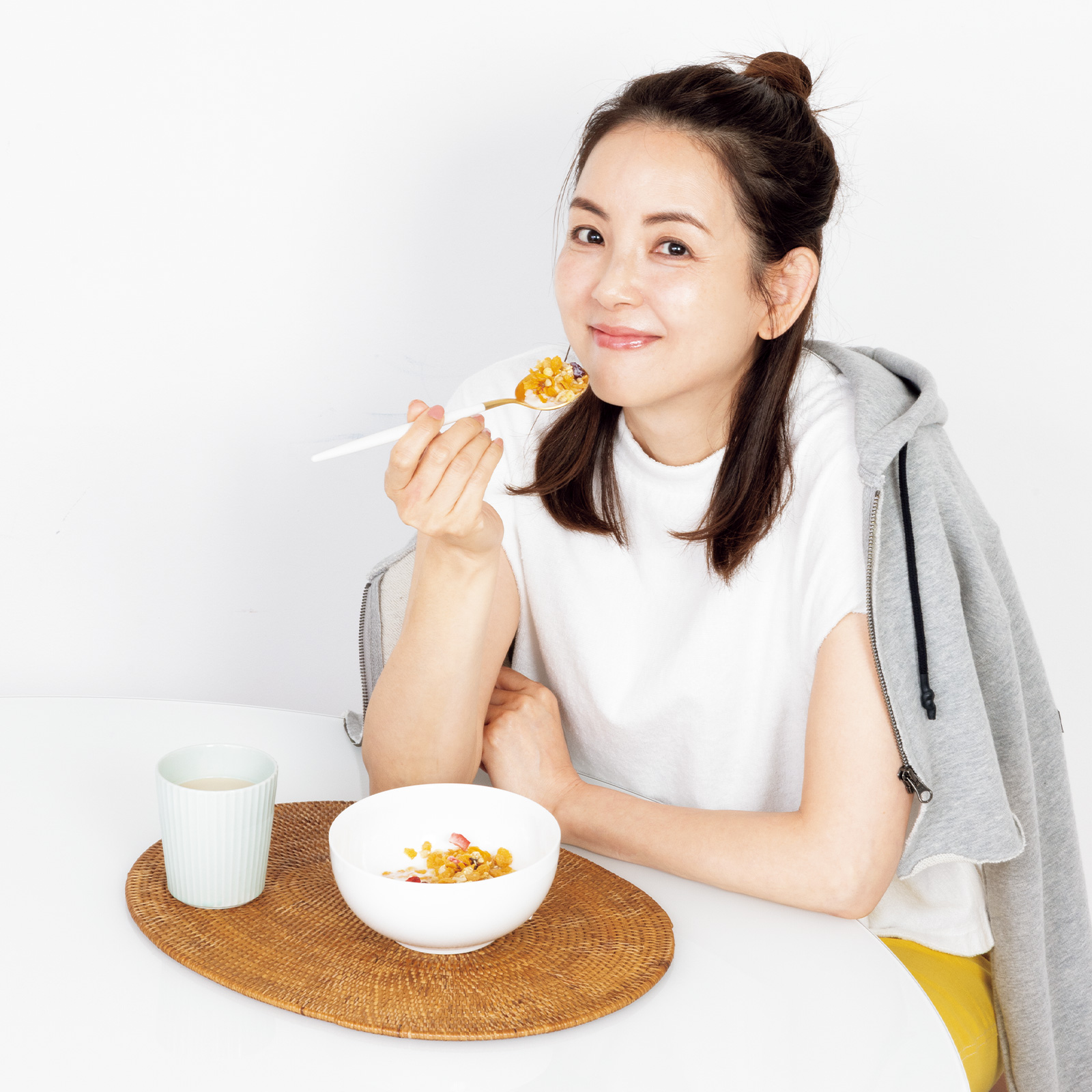 【6:30】朝食はフルーツグラノーラ。モグモグ噛んで食べていたら、なんだか元気が湧いてきた!?