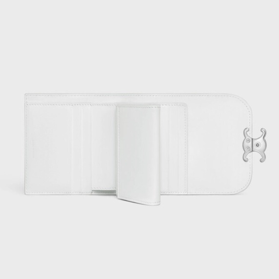 金具もシルバーで清涼感が際立つミニウォレット。まだまだ小銭も必要派にうれしい、取り出しやすいコインポケット付き。[ヨコ10.5×タテ8.5×マチ4㎝、カードスロット5、スナップボタン付きフォールデッドコインポケット1、ノートポケット1、フラットポケット2]財布¥92,400(セリーヌ バイ エディ・スリマン/セリーヌ ジャパン