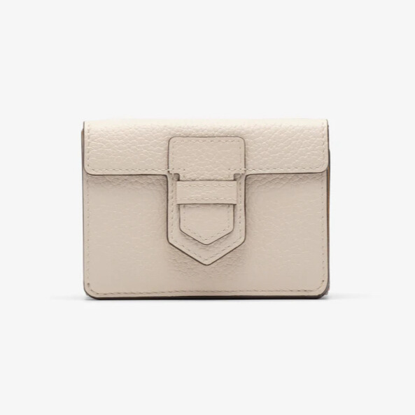 トリヨン ソフトレザーを使用した柔らかな印象のミニ財布。グレーがかったセサミカラーは使いやすく、ダークカラーのバッグの中でも見つけやすそう。タンペートなど人気バッグと同じ色で揃えても。[ヨコ10×タテ7.5×マチ3㎝、カードスロット3、札入れ1、コインポケット1]財布¥97,900(デルヴォー/リシュモンジャパン