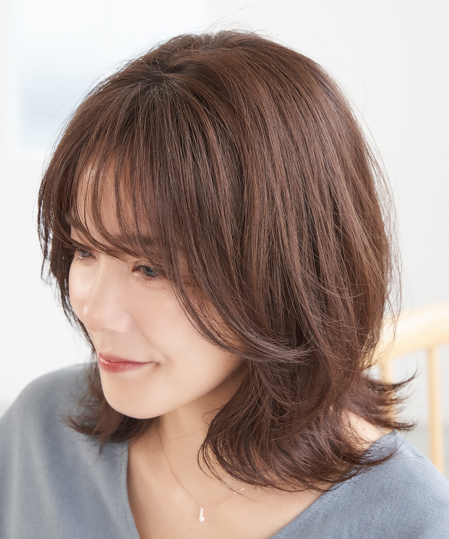 内巻きと外巻きを重ねた大人ふんわりミディアム
