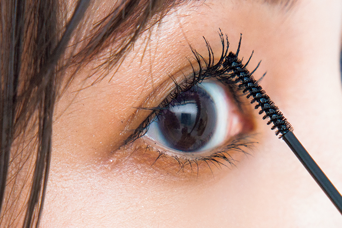 上まつ毛は、ブラシを横にして全体に塗布した後、ブラシを縦にして重ね塗りをし、ドーリーな束感を演出。下まつ毛にはあえて塗らず、大人の抜け感を出して。