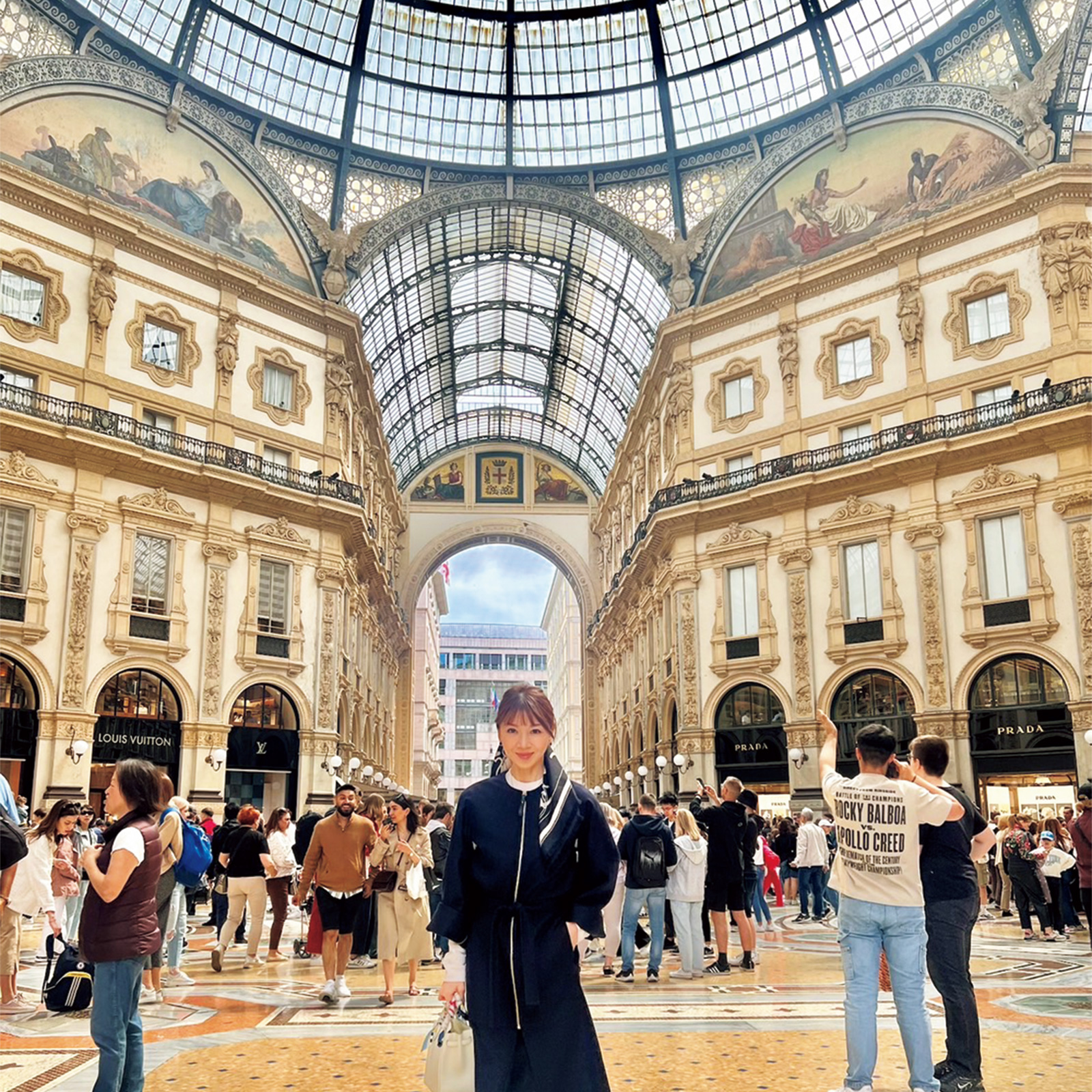 ミラノのドゥオモ横のガレリアにて。空気の乾燥は肌には大敵ですが、ヘアが夕方にペタッとならないのは利点。