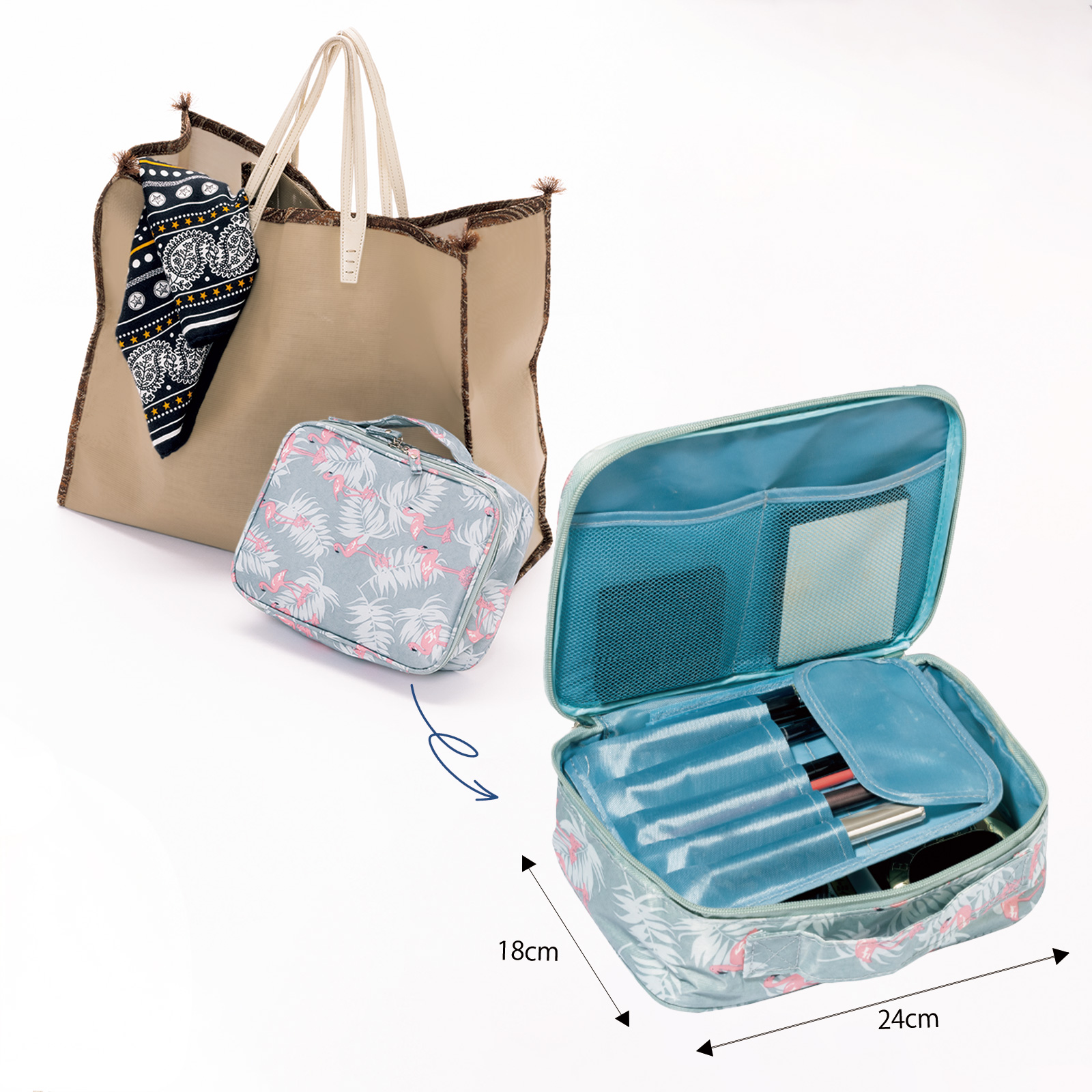 2~3泊ならアヴァケーションのトートバッグを。長旅のときにもクルクルまるめてスーツケースに入れてサブバッグに。コスメはタイの雑貨店で購入したポーチにすべてイン。