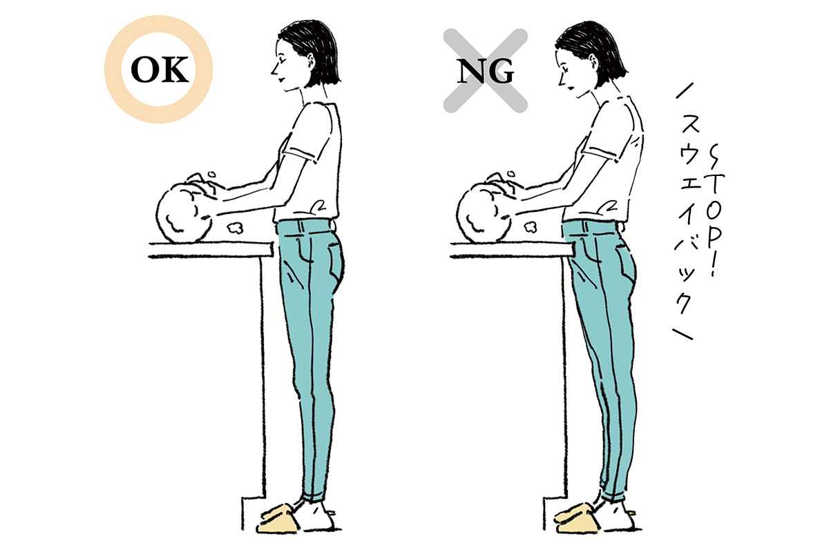 物を取るときは、しっかり股関節を曲げてしゃがんで取るようにしましょう。お尻や脚の筋肉を効率よく使えることで、腰への負担もなくせるので良いことしかありません。