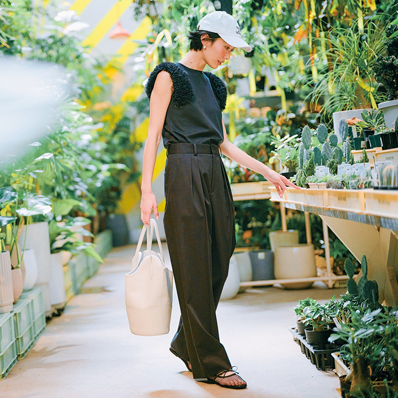 黒Tシャツでもリラックスしたおしゃれを楽しみたい!そんな時には、暑い夏に重宝するストレスフリーな「ゆるパン」をチョイス。モノトーンのアイテムを選べばラフすぎないワンマイルコーデに。
