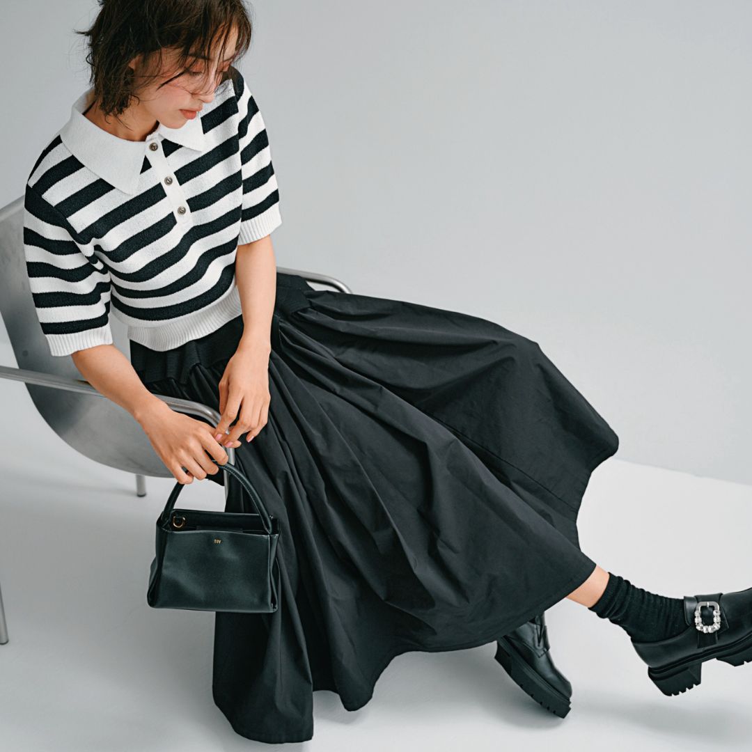 ポロシャツ¥12,300(ランクリック)スカート¥40,000(シーニュ)バッグ¥33,000(TOV/アンソロジー)ローファー¥18,150(ダイアナ/ダイアナ 銀座本店)ソックス/スタイリスト私物