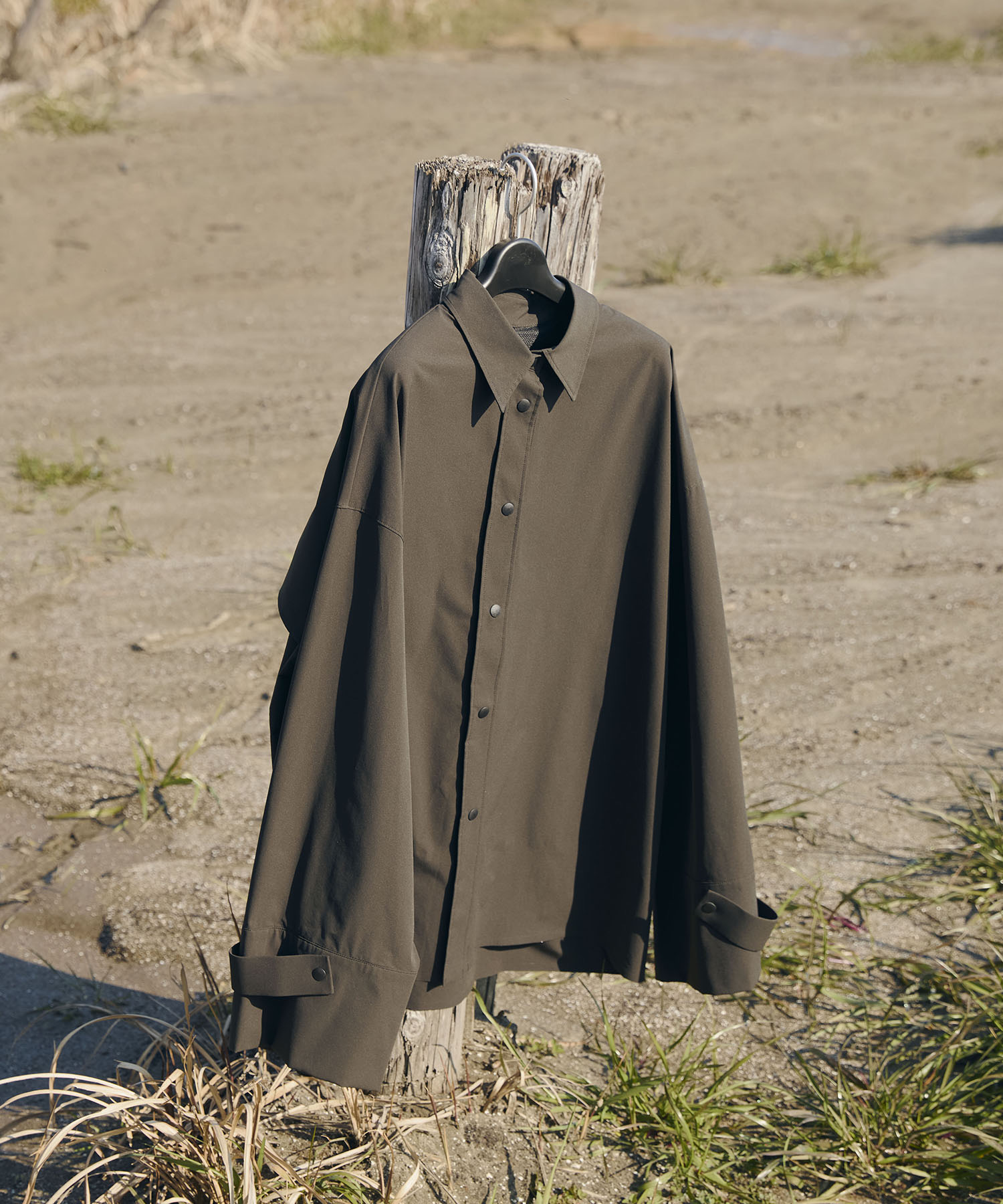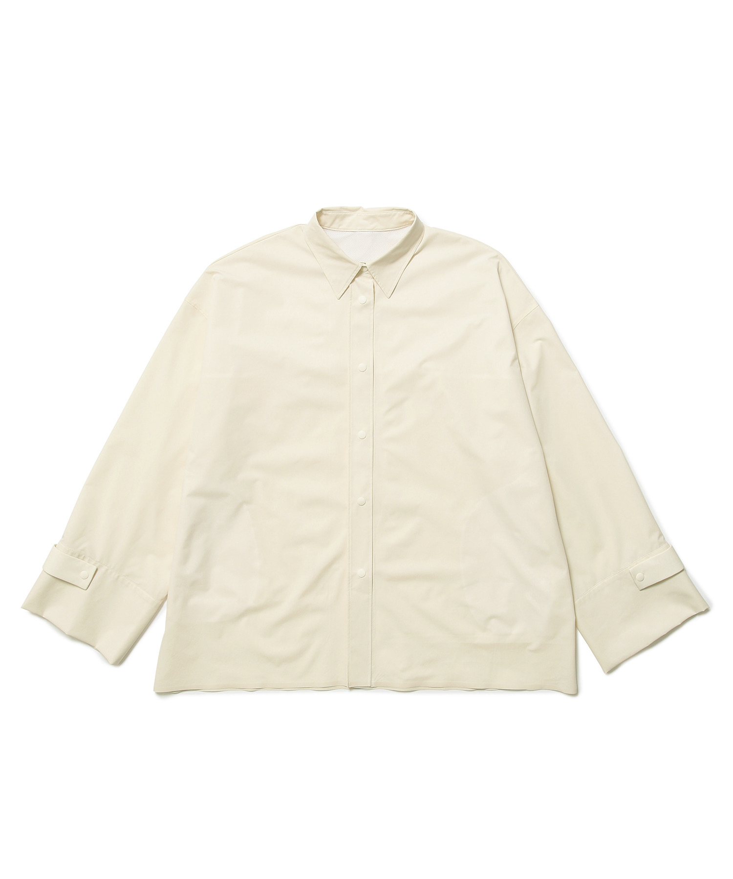 さらりと羽織るだけで決まるシンプルなオーバーサイズシャツ。一枚あればどんなインナーにも合わせやすそう。裏地はメッシュ構造なので、蒸し暑い水際シーンでも通気性が良く快適。 袖口は、腕に合わせてベルトで調整可能。両脇にはシームポケットがあり機能面も充実。